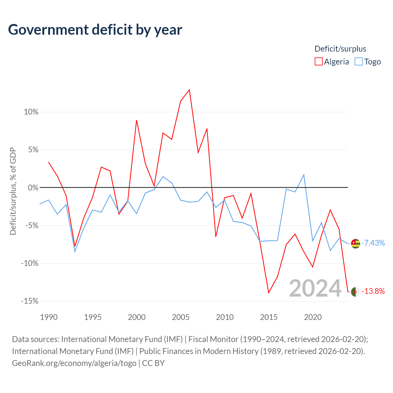 - International Monetary Fund (IMF) | Fiscal Monitor (1990–2024, retrieved 2026-02-20)
