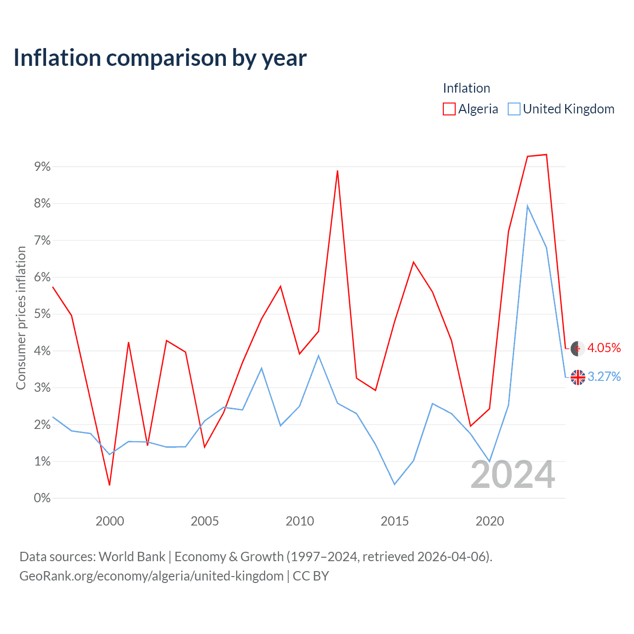 Data sources: World Bank | Economy & Growth (1960–2024, retrieved 2026-04-06).
