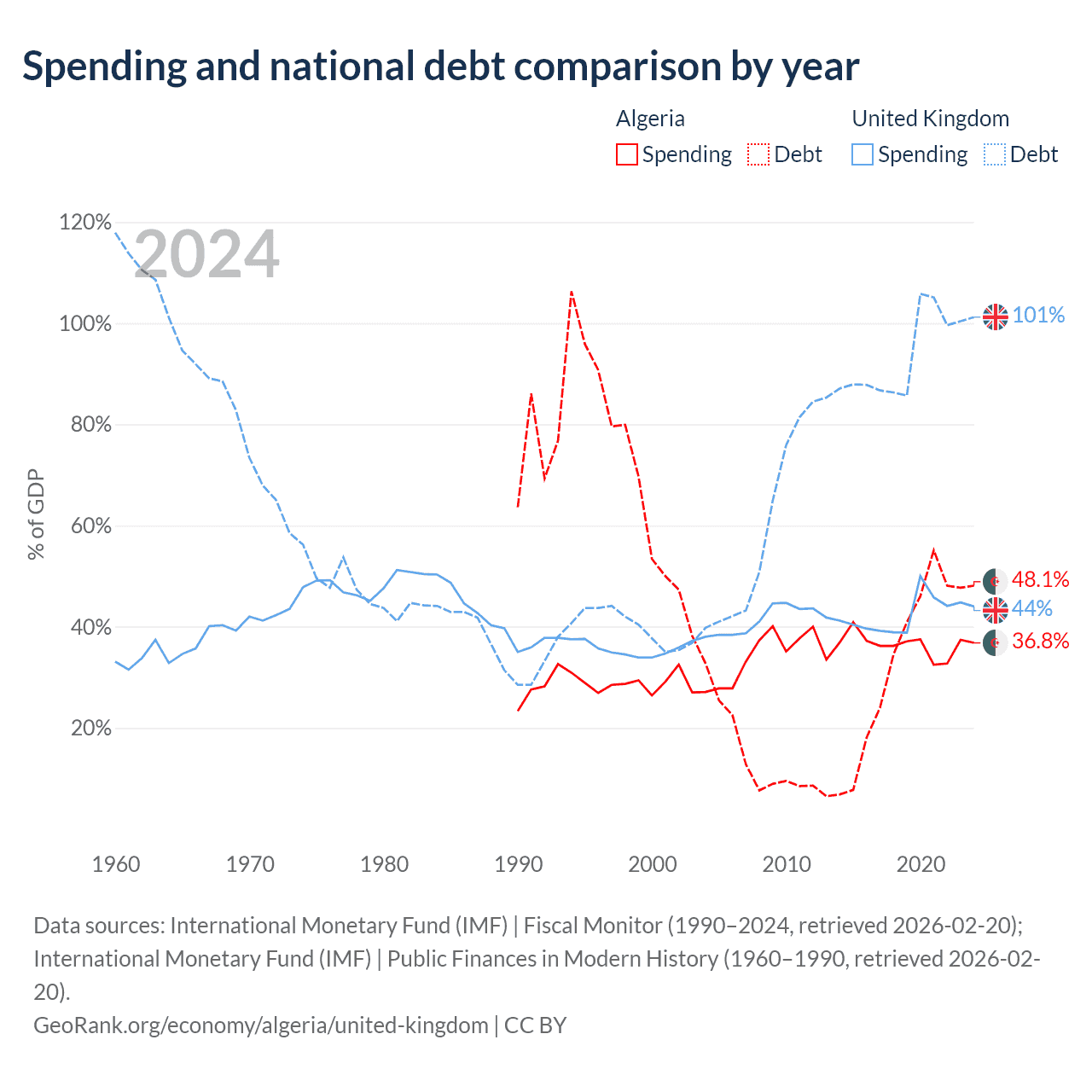 Algeria has $129B in government debt (48.1% of GDP), compared to $3.73T (101.2% of GDP) in the United Kingdom.