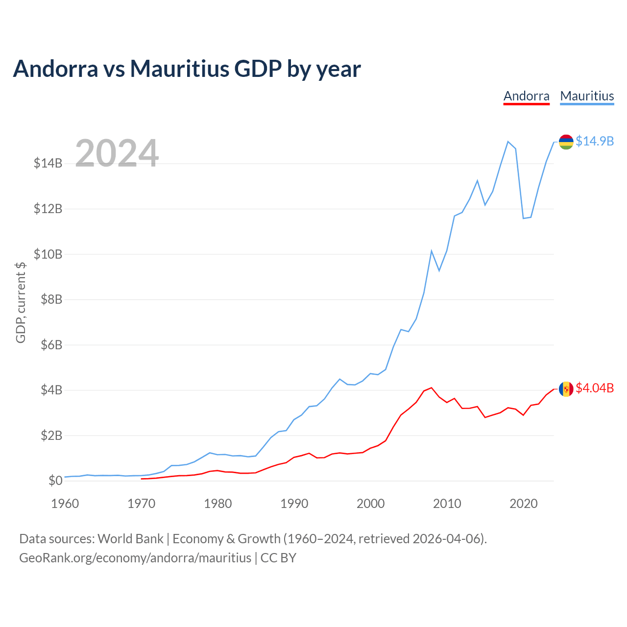Andorra vs Mauritius GDP by year