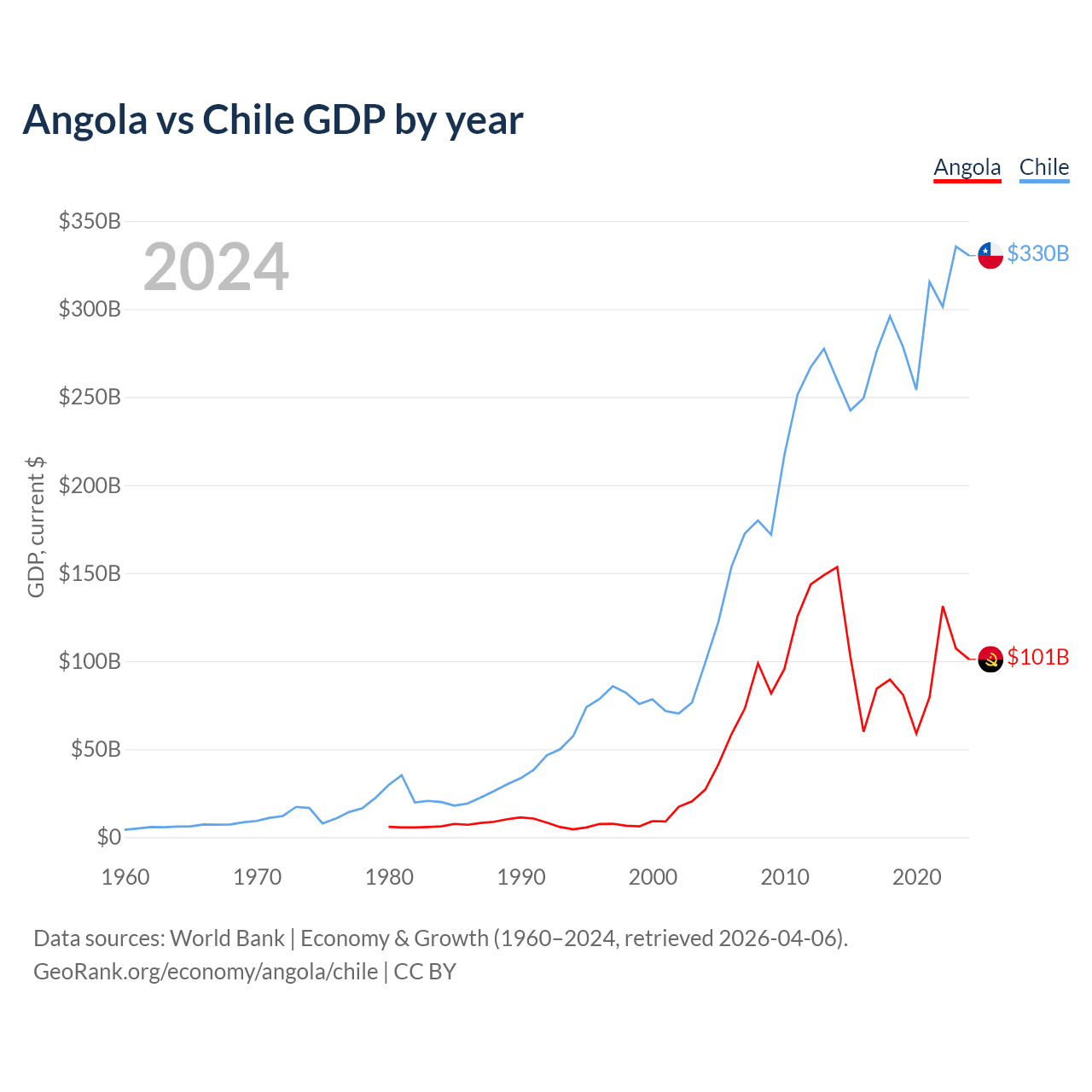 Angola vs Chile GDP by year