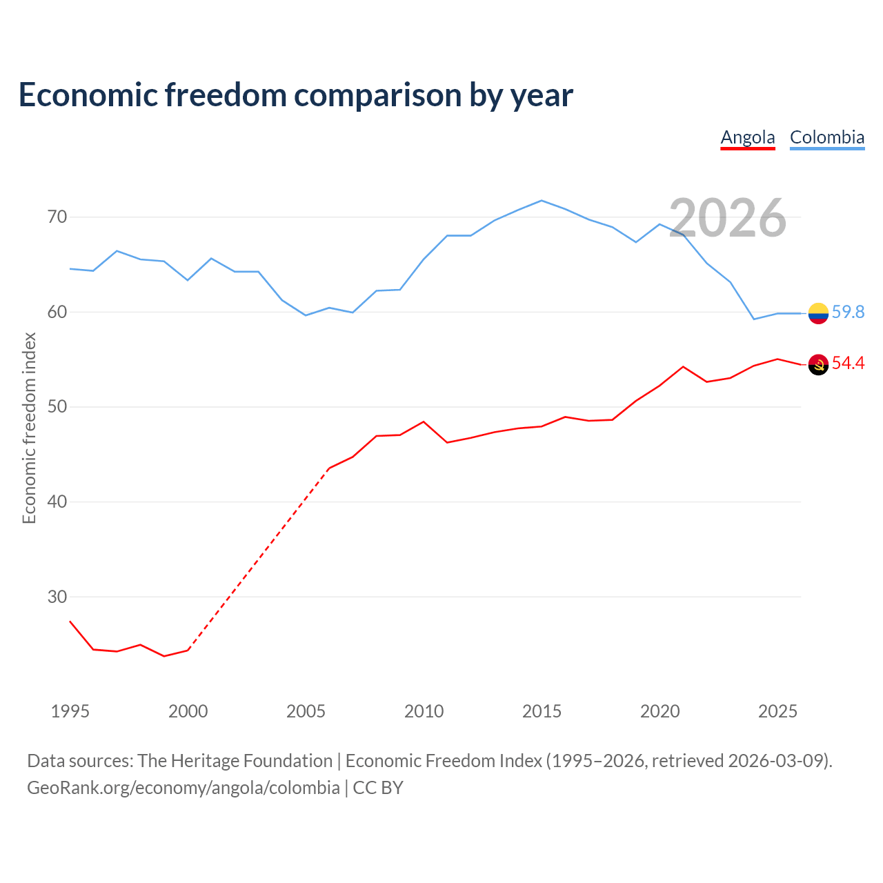 Data sources: The Heritage Foundation | Economic Freedom Index (1995–2026, retrieved 2026-03-09).