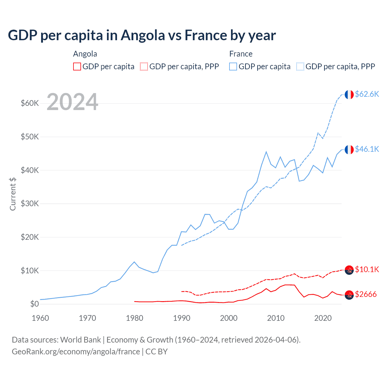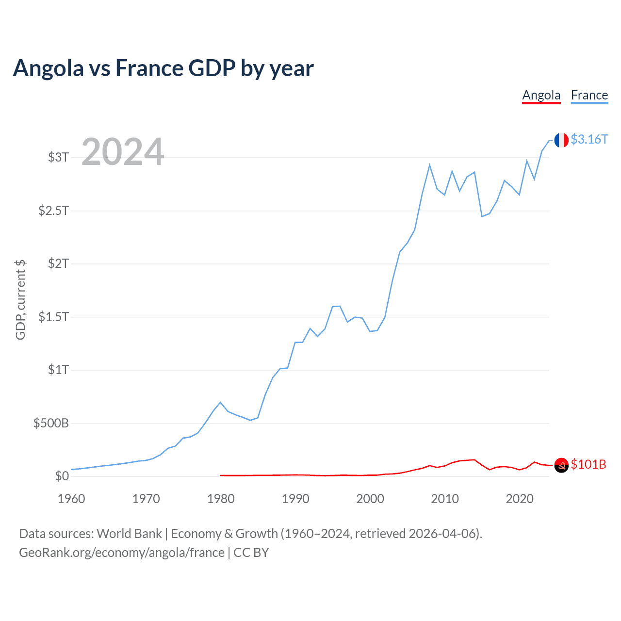 Angola vs France GDP by year