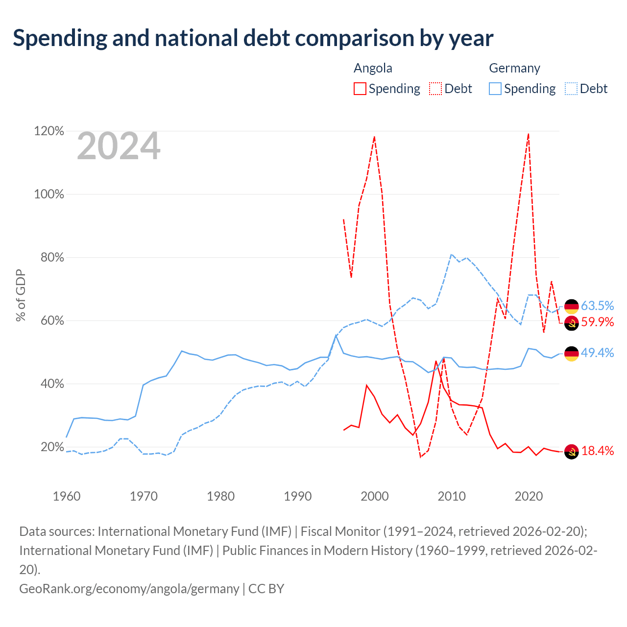 Angola has $60.5B in government debt (59.9% of GDP), compared to $2.97T (63.5% of GDP) in Germany.