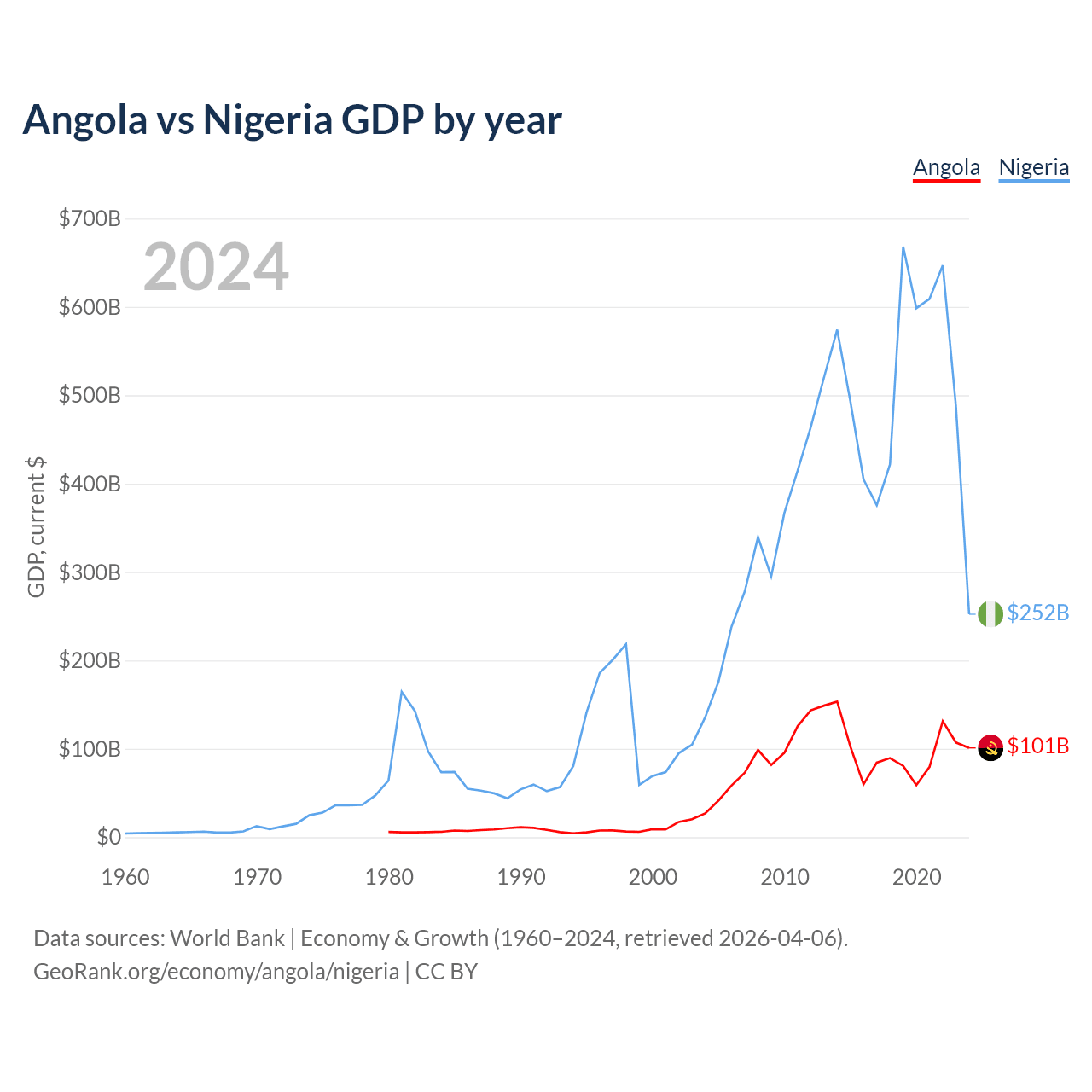 Angola vs Nigeria GDP by year