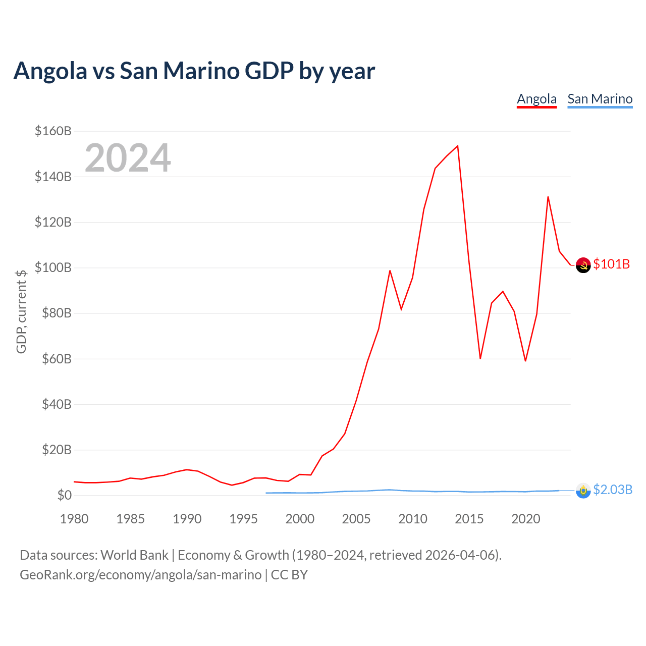 Angola vs San Marino GDP by year