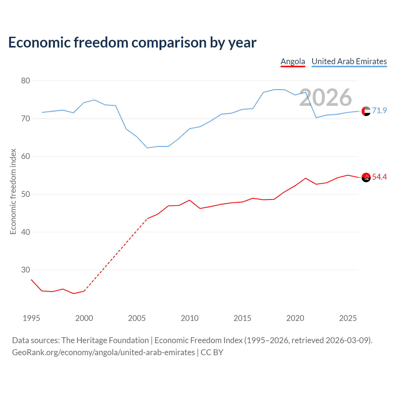 Data sources: The Heritage Foundation | Economic Freedom Index (1995–2026, retrieved 2026-03-09).