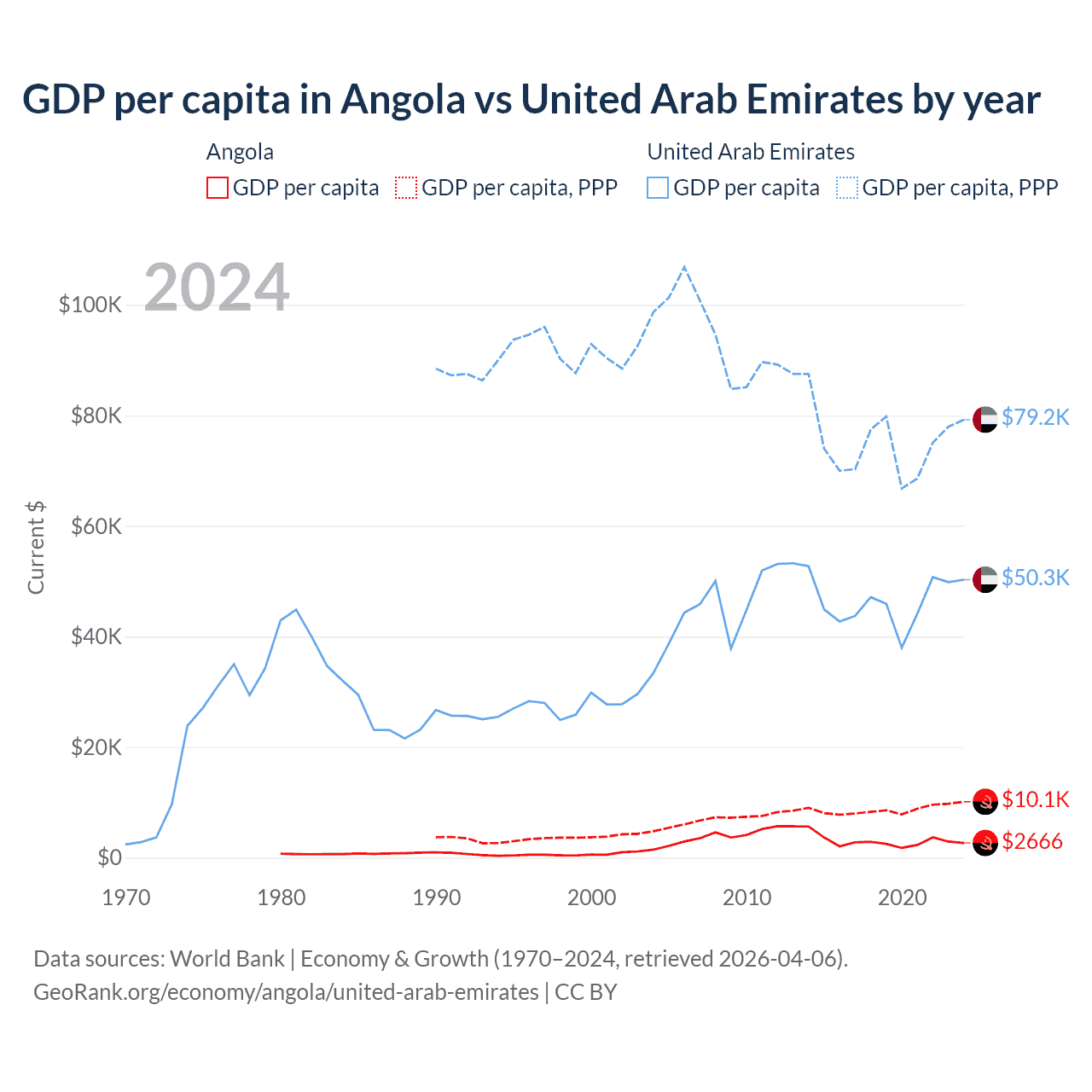Data sources: World Bank | Economy & Growth (1970–2024, retrieved 2026-04-06).
