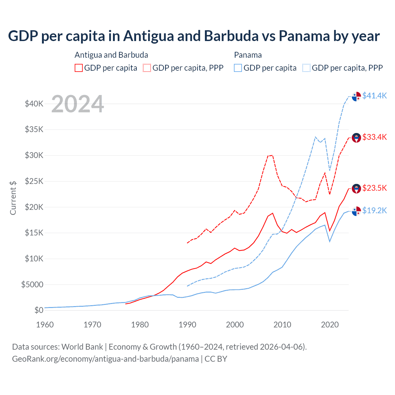 GDP per capita in Antigua and Barbuda vs Panama by year