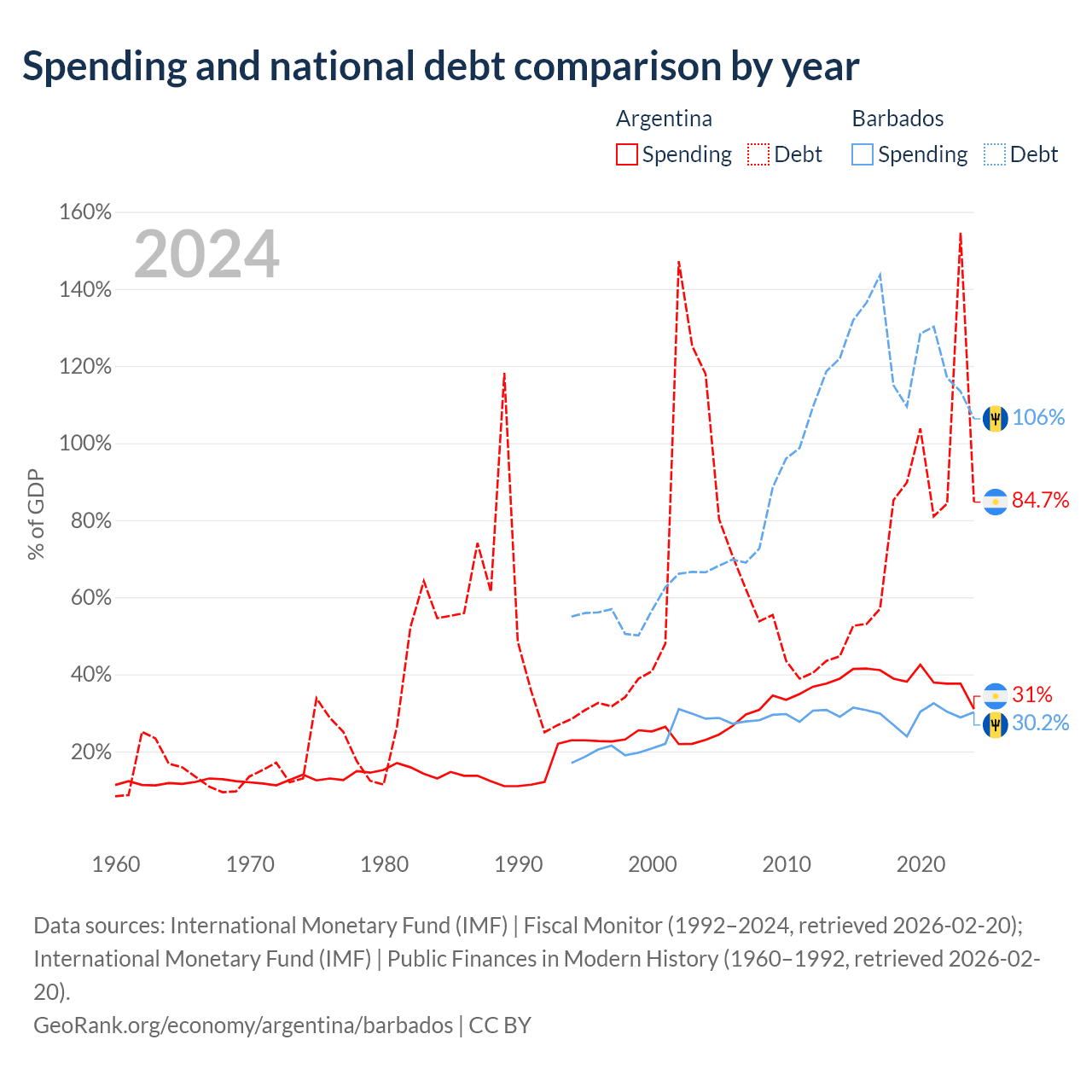 Argentina has $540B in government debt (84.7% of GDP), compared to $7.97B (106.3% of GDP) in Barbados.