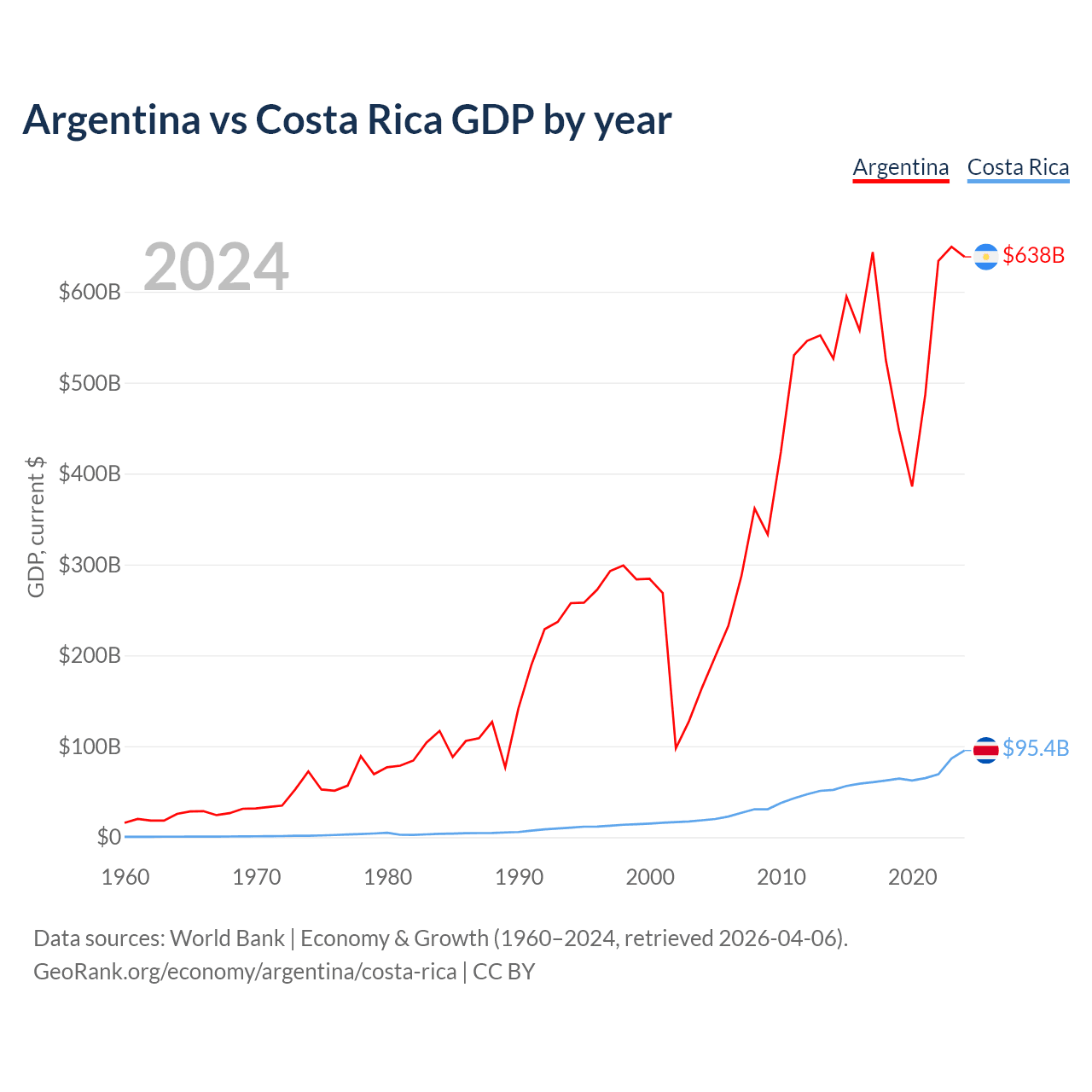 Data sources: World Bank | Economy & Growth (1960–2024, retrieved 2026-04-06).
