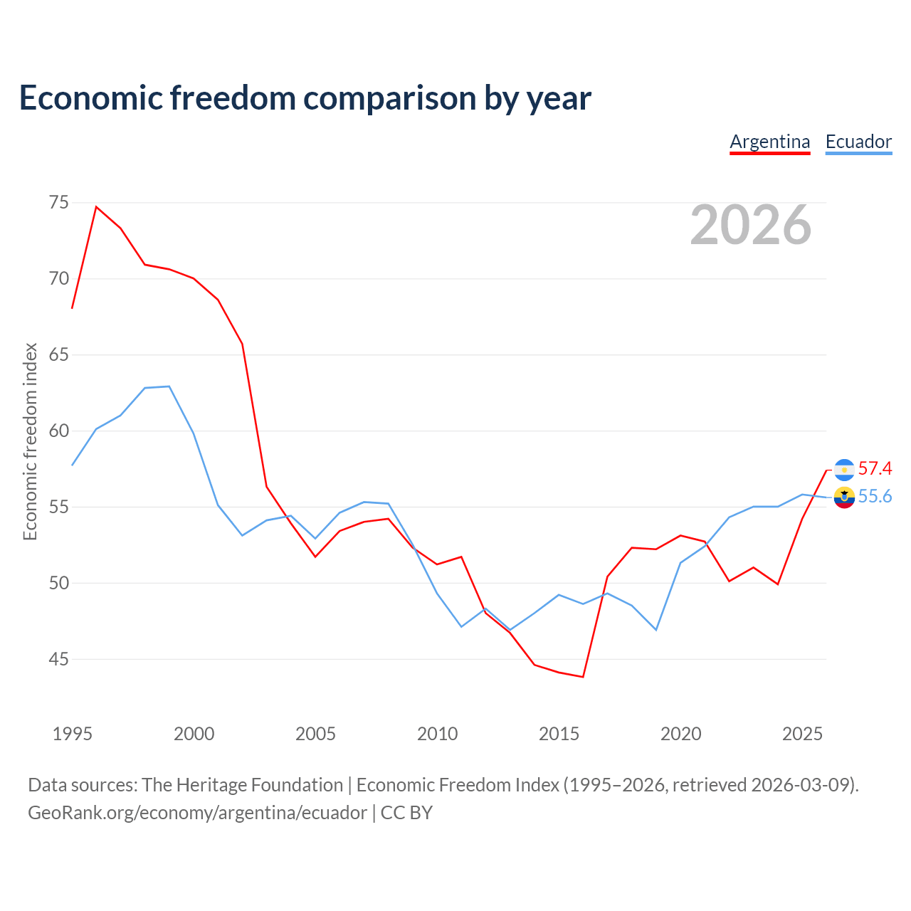Data sources: The Heritage Foundation | Economic Freedom Index (1995–2026, retrieved 2026-03-09).