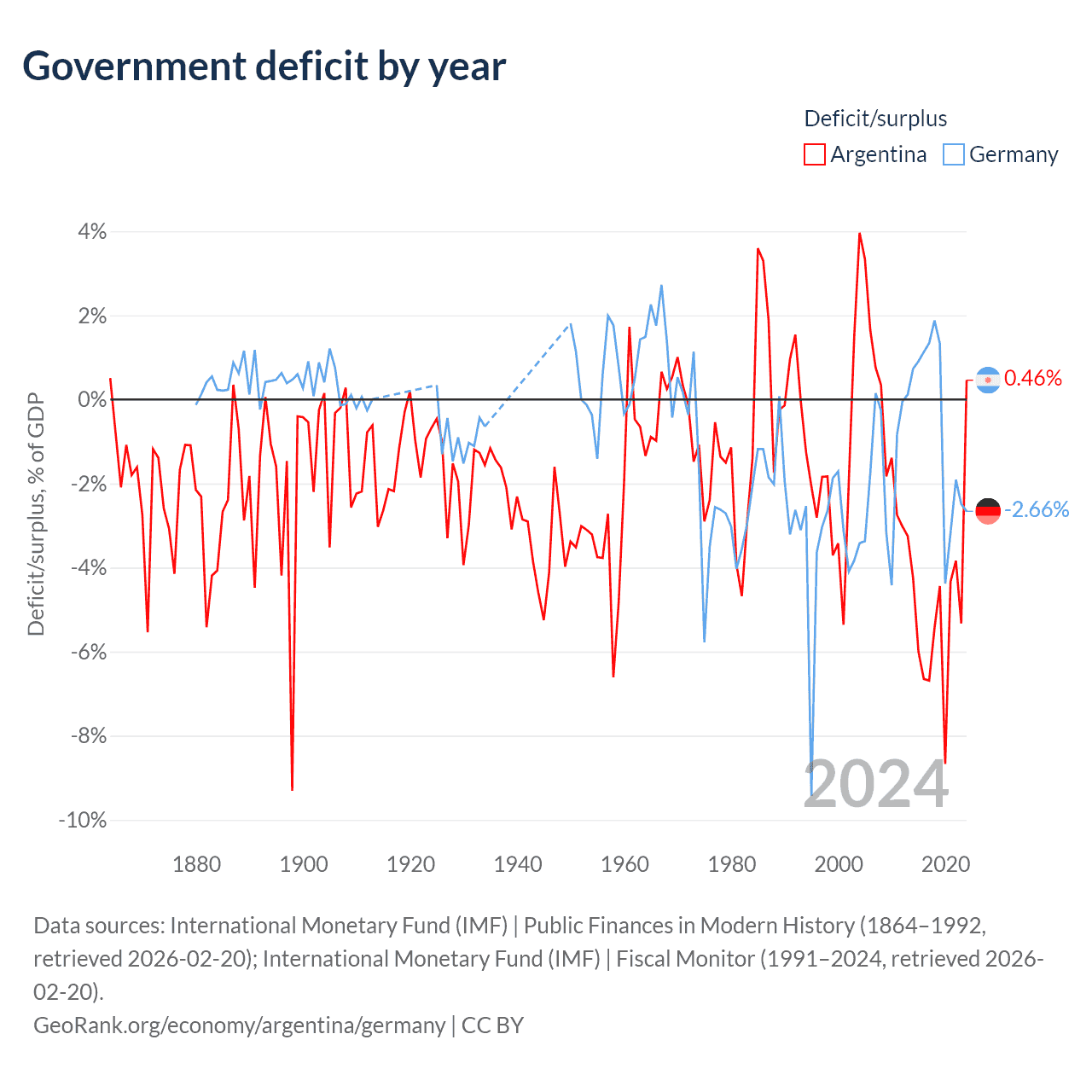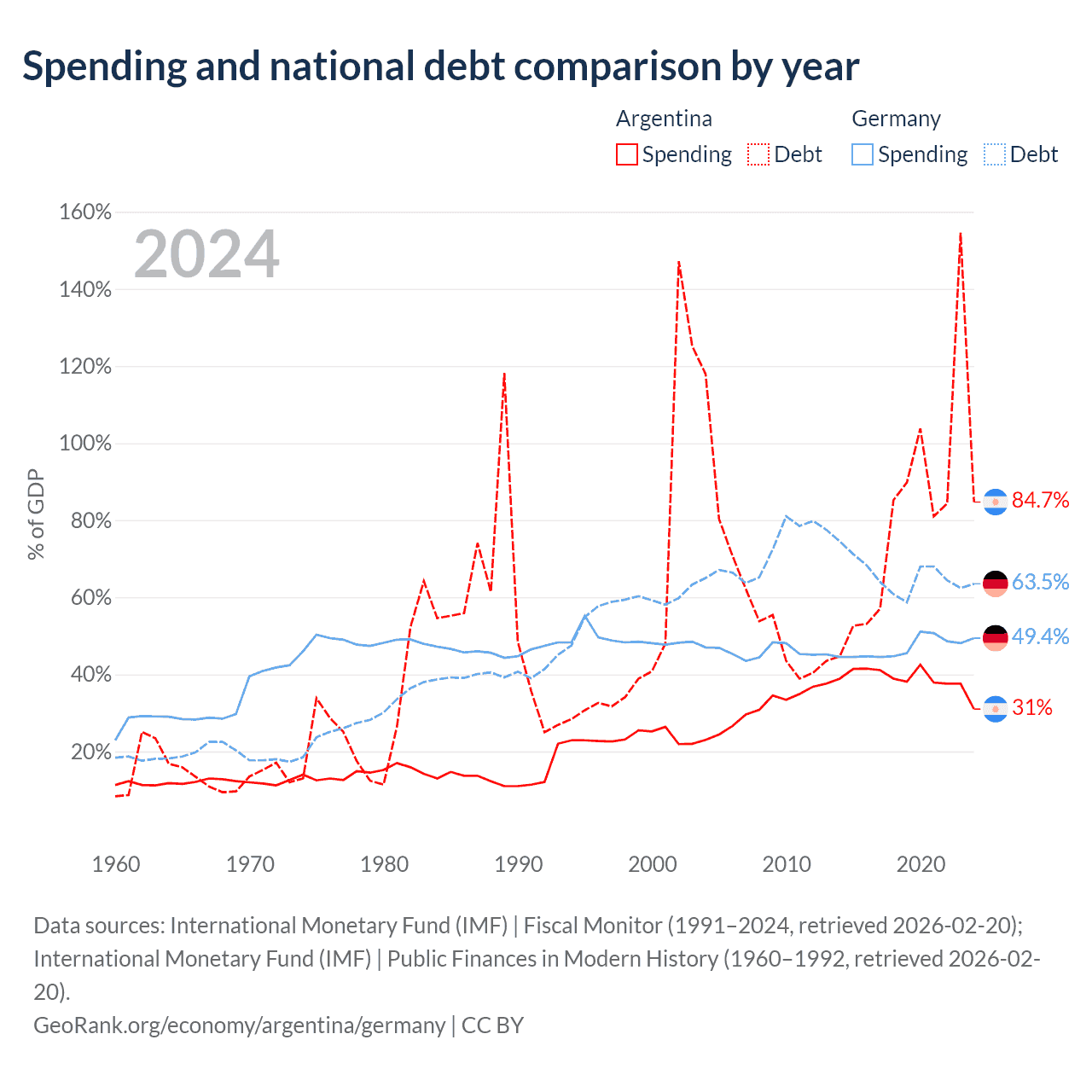 Argentina has $540B in government debt (84.7% of GDP), compared to $2.97T (63.5% of GDP) in Germany.