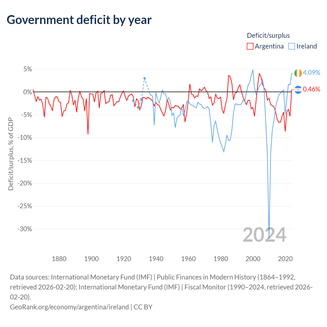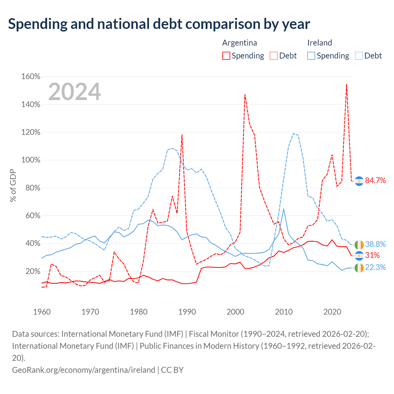 Argentina has $540B in government debt (84.7% of GDP), compared to $236B (38.8% of GDP) in Ireland.