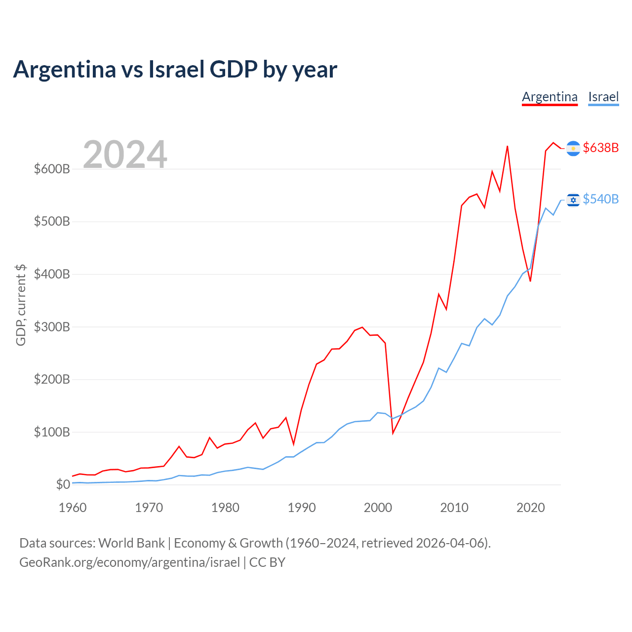 Argentina vs Israel GDP by year