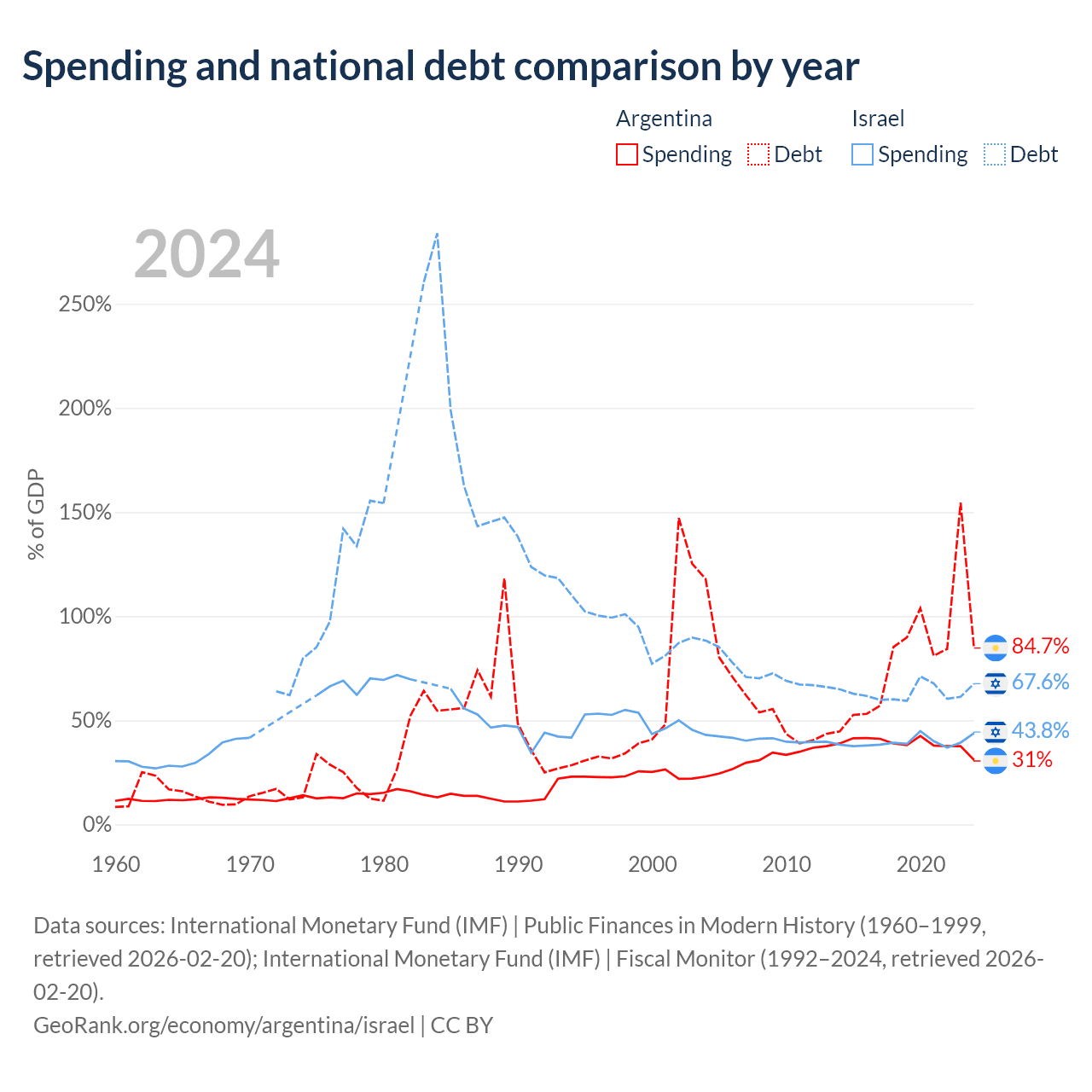 Argentina has $540B in government debt (84.7% of GDP), compared to $366B (67.6% of GDP) in Israel.