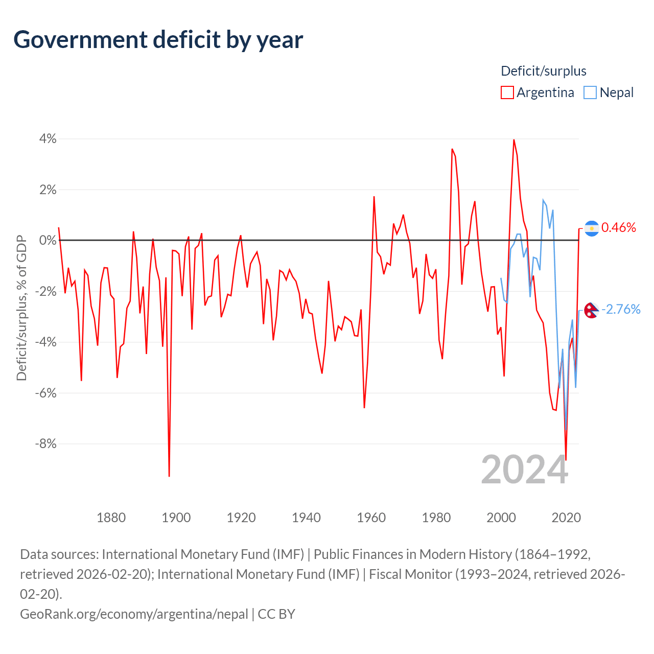 Argentina has $540B in government debt (84.7% of GDP), compared to $20.7B (48.3% of GDP) in Nepal.