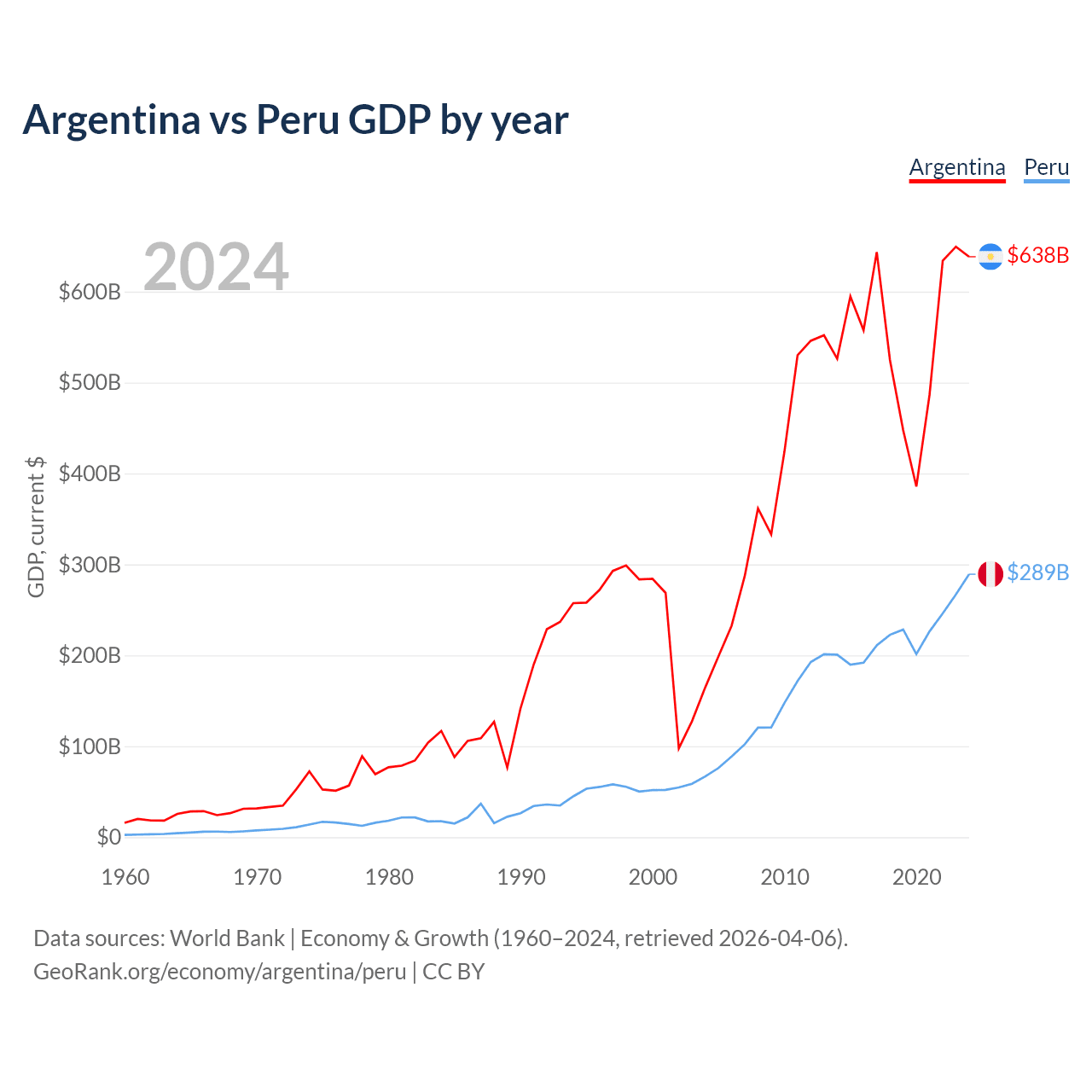 Argentina vs Peru GDP by year