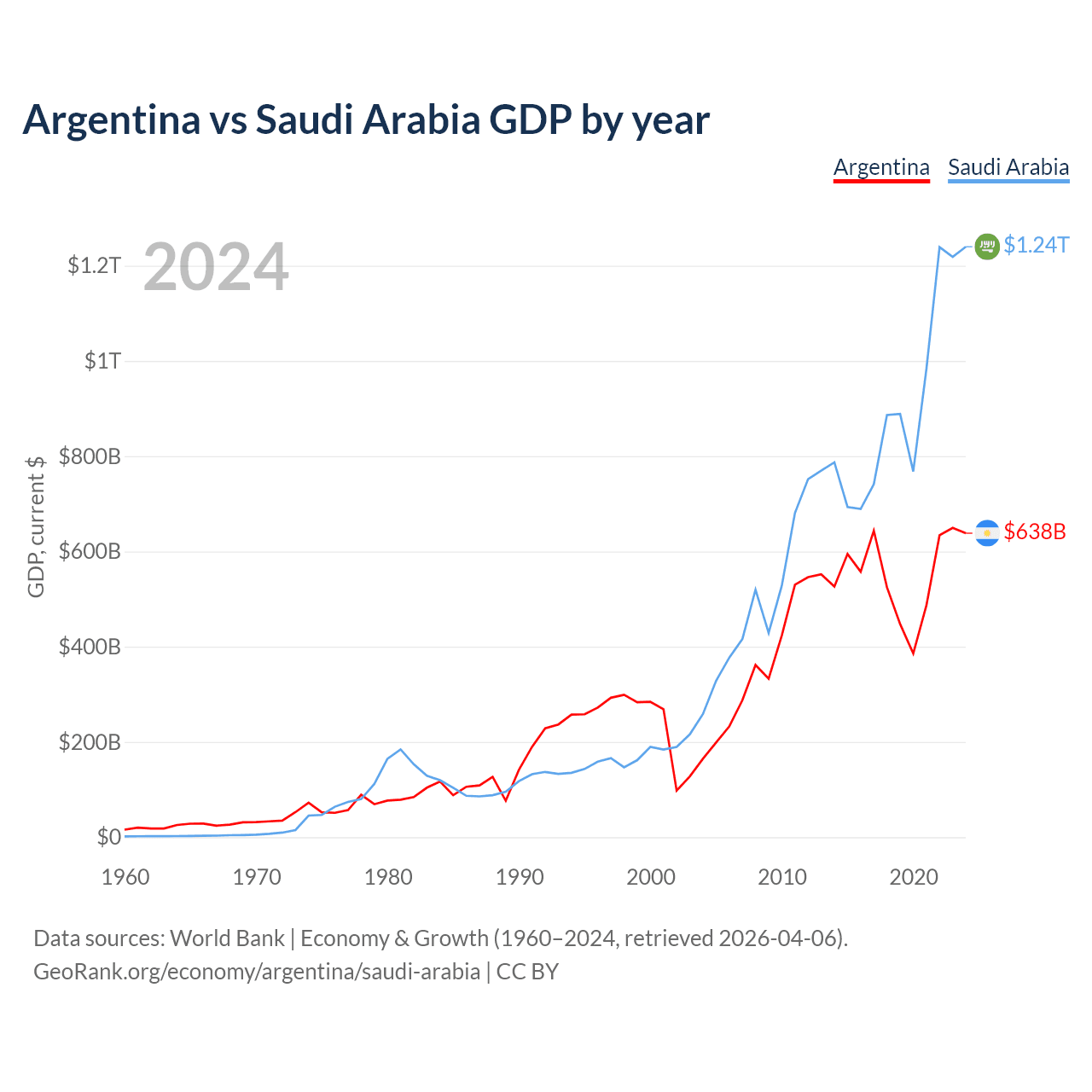 Argentina vs Saudi Arabia GDP by year