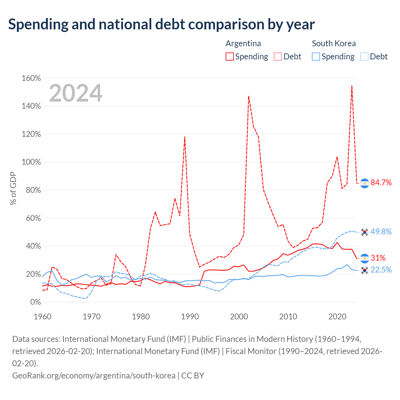 Argentina has $540B in government debt (84.7% of GDP), compared to $934B (49.8% of GDP) in South Korea.