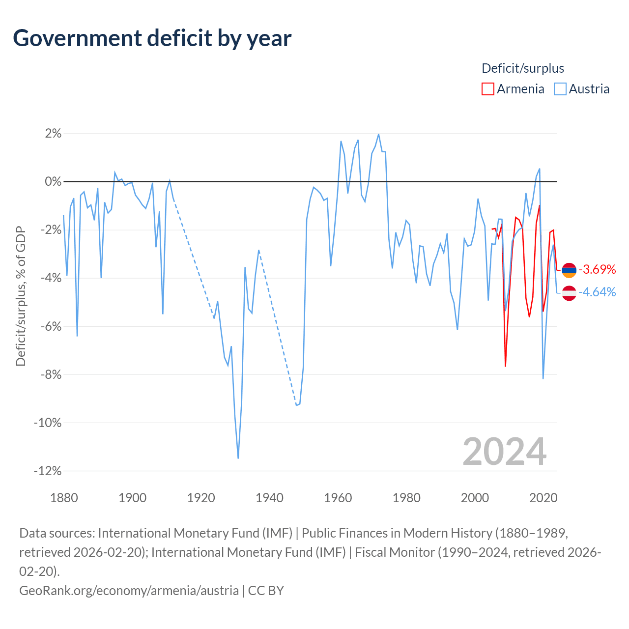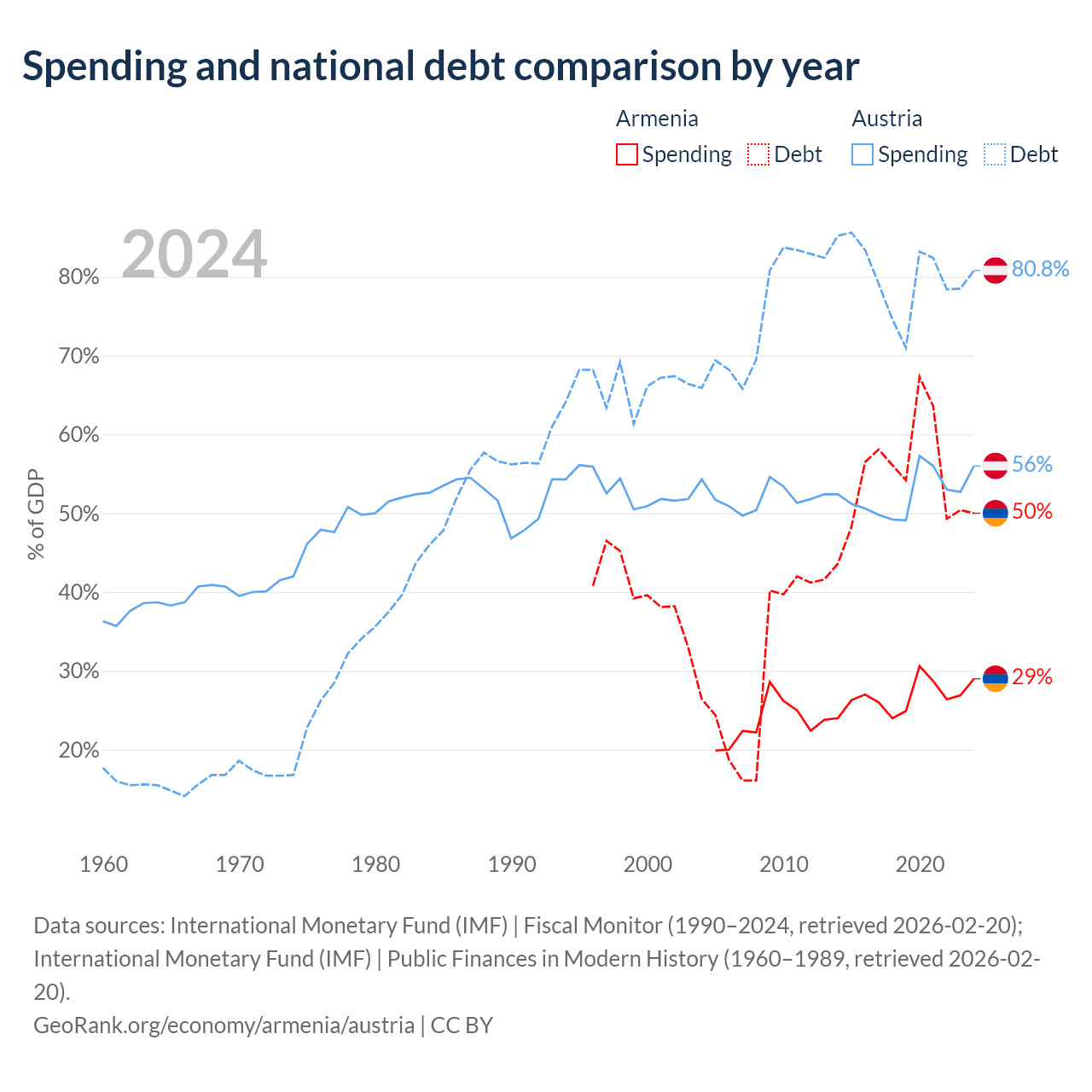 Armenia has $13B in government debt (50% of GDP), compared to $432B (80.8% of GDP) in Austria.