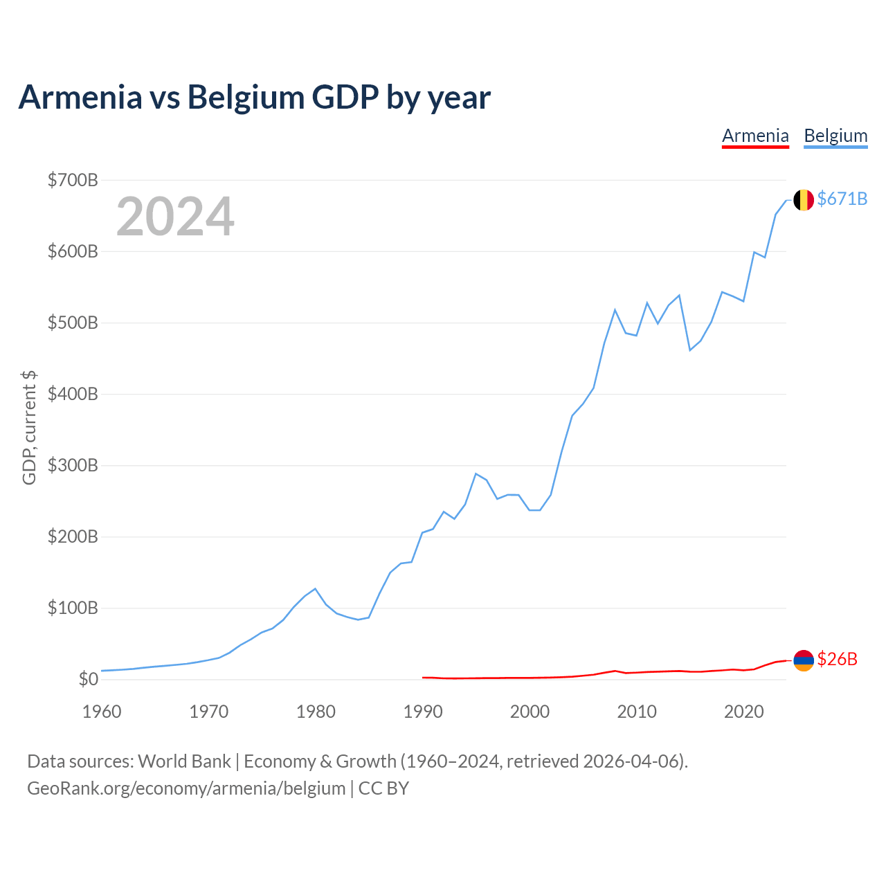 Armenia vs Belgium GDP by year