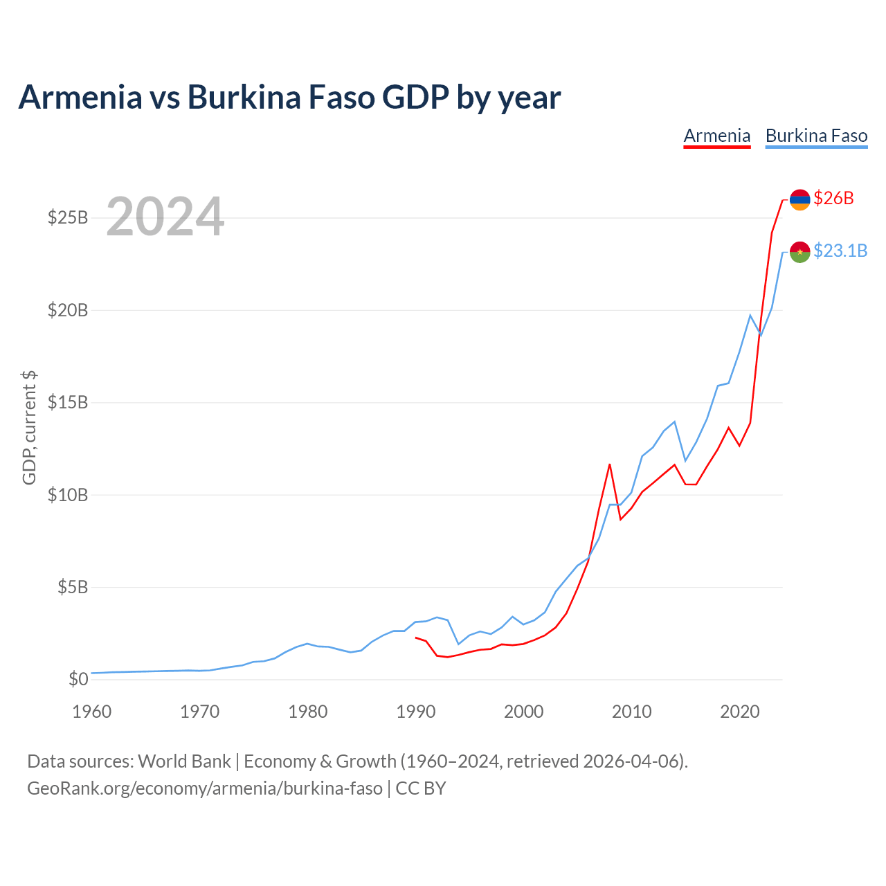 Armenia vs Burkina Faso GDP by year
