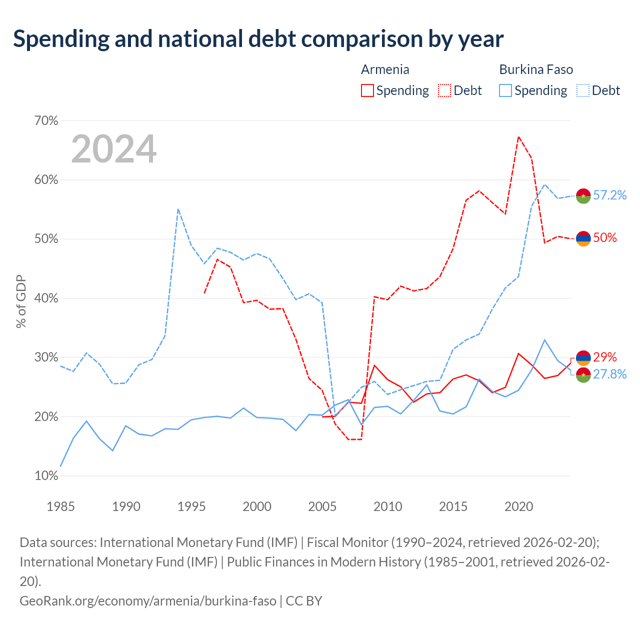 Armenia has $13B in government debt (50% of GDP), compared to $13.2B (57.2% of GDP) in Burkina Faso.
