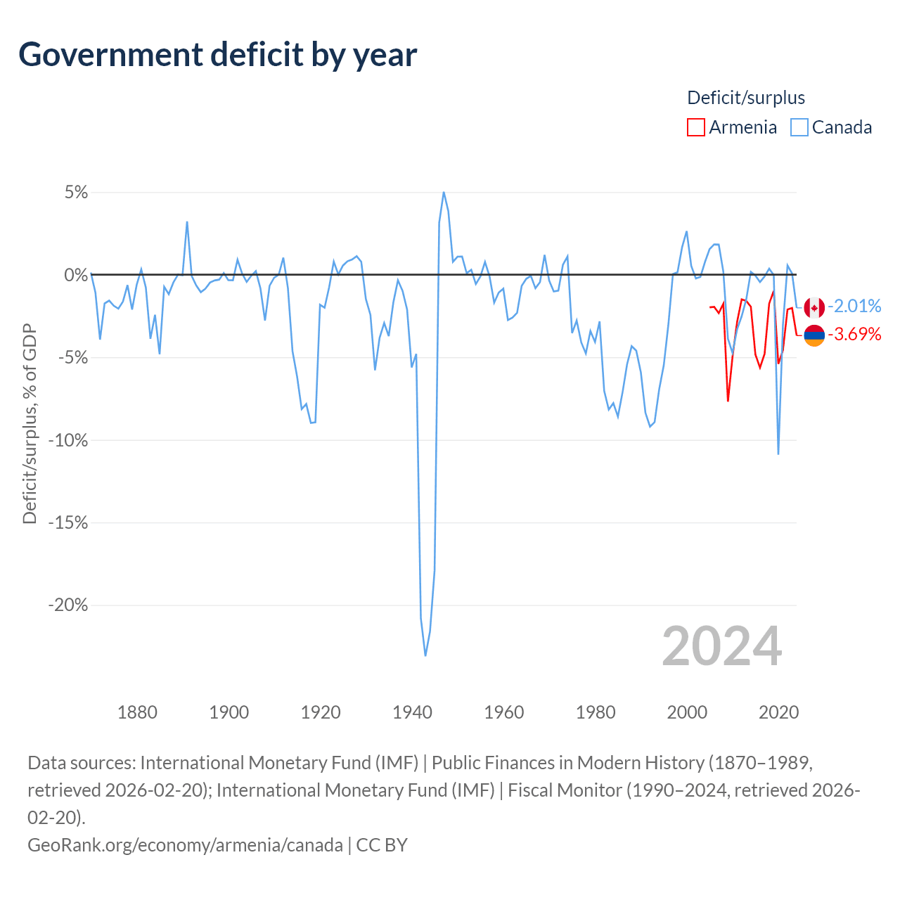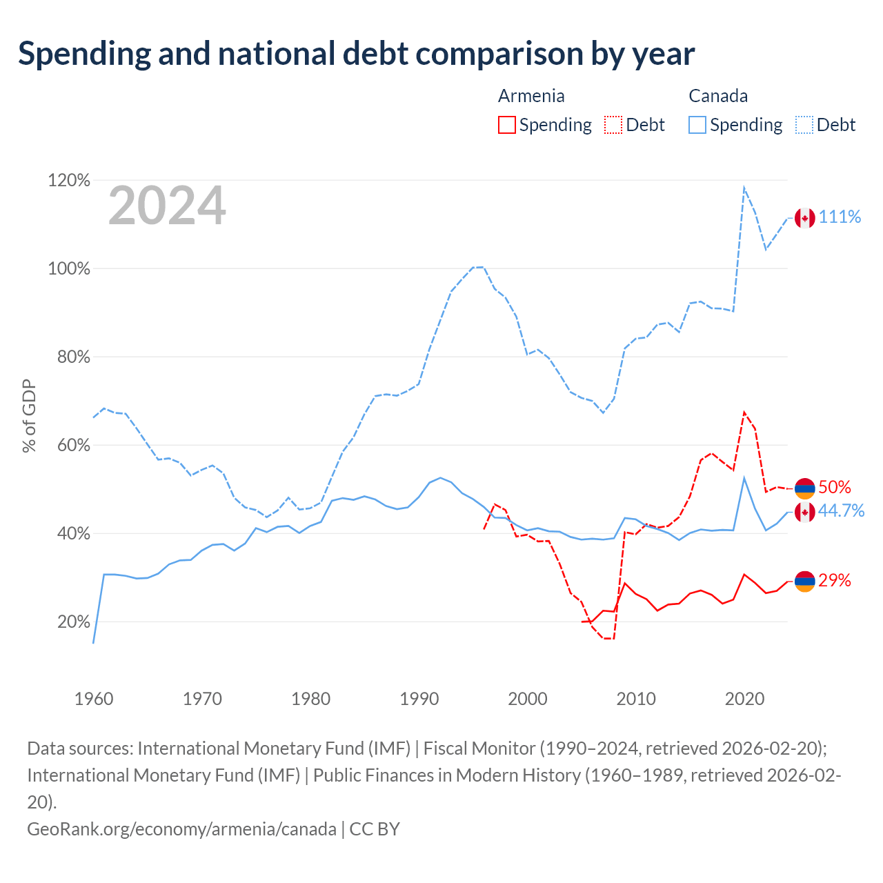 Armenia has $13B in government debt (50% of GDP), compared to $2.5T (111.3% of GDP) in Canada.