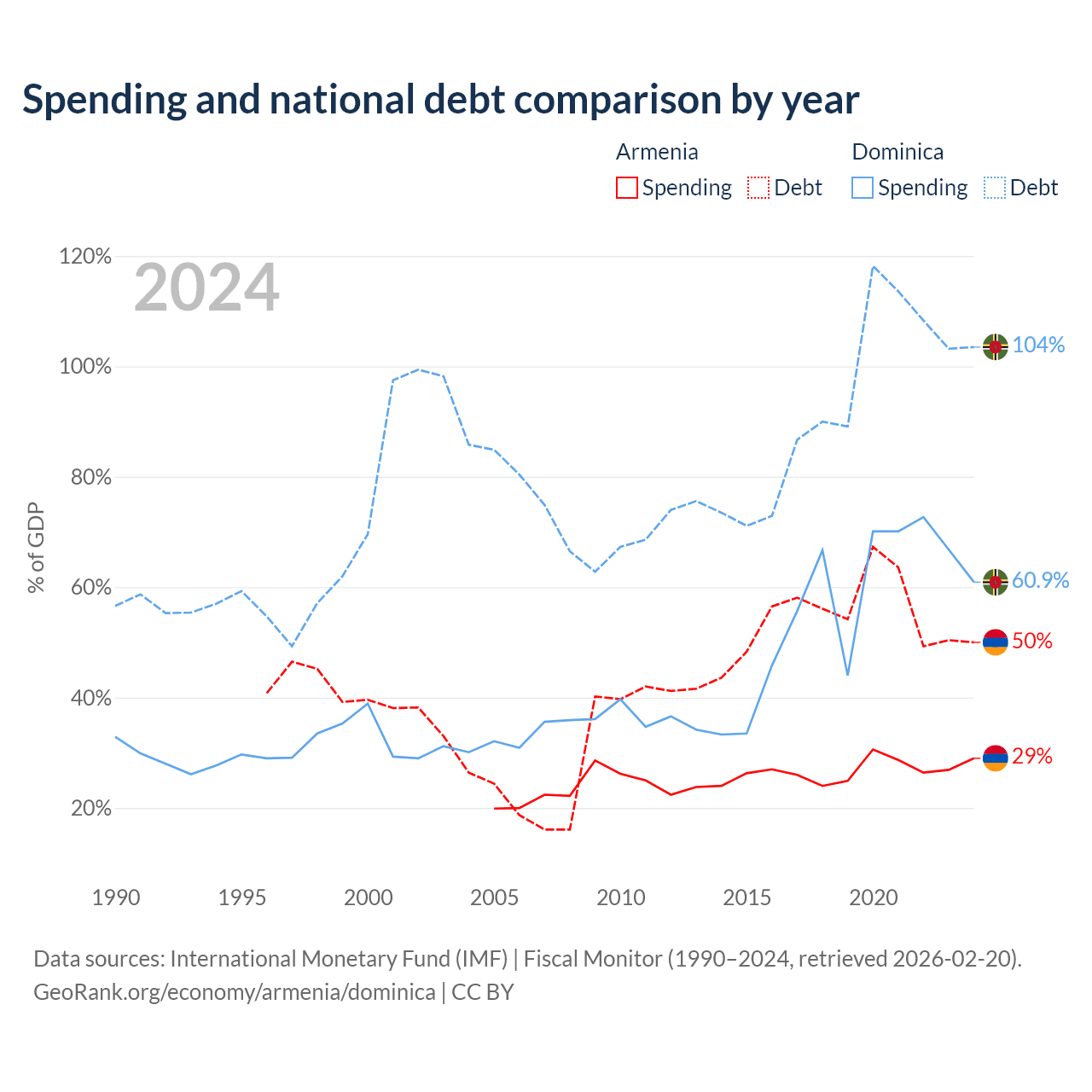 Armenia has $13B in government debt (50% of GDP), compared to $713M (103.5% of GDP) in Dominica.