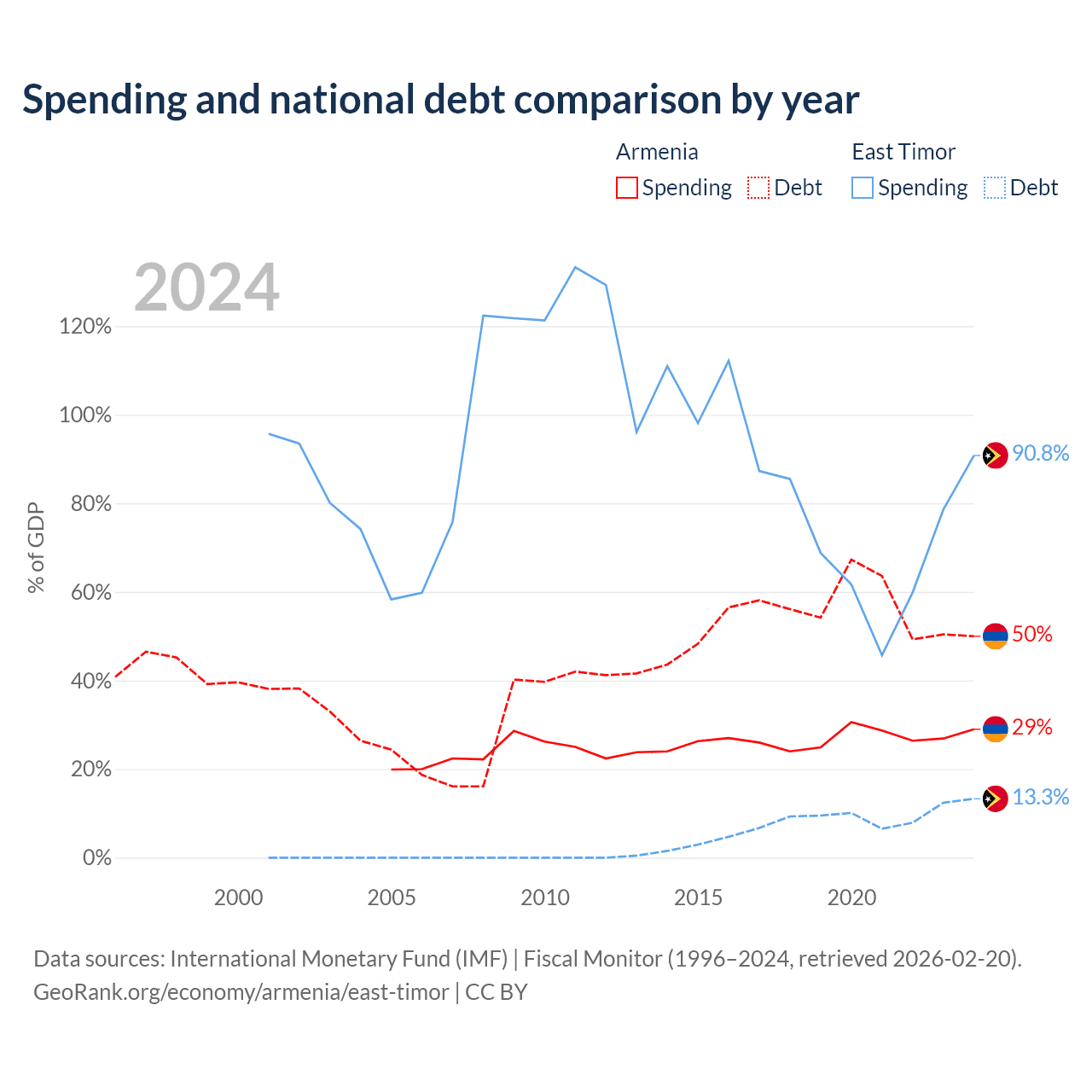 Armenia has $13B in government debt (50% of GDP), compared to $249M (13.3% of GDP) in East Timor.
