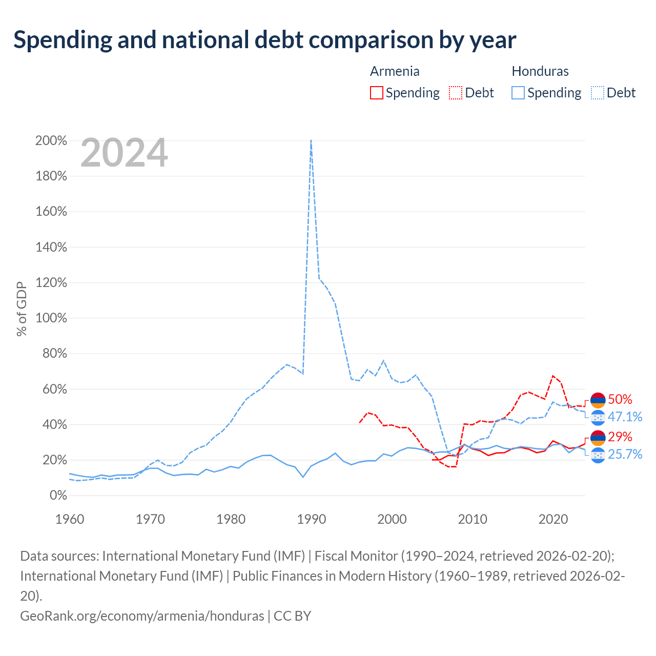 Armenia has $13B in government debt (50% of GDP), compared to $17.5B (47.1% of GDP) in Honduras.