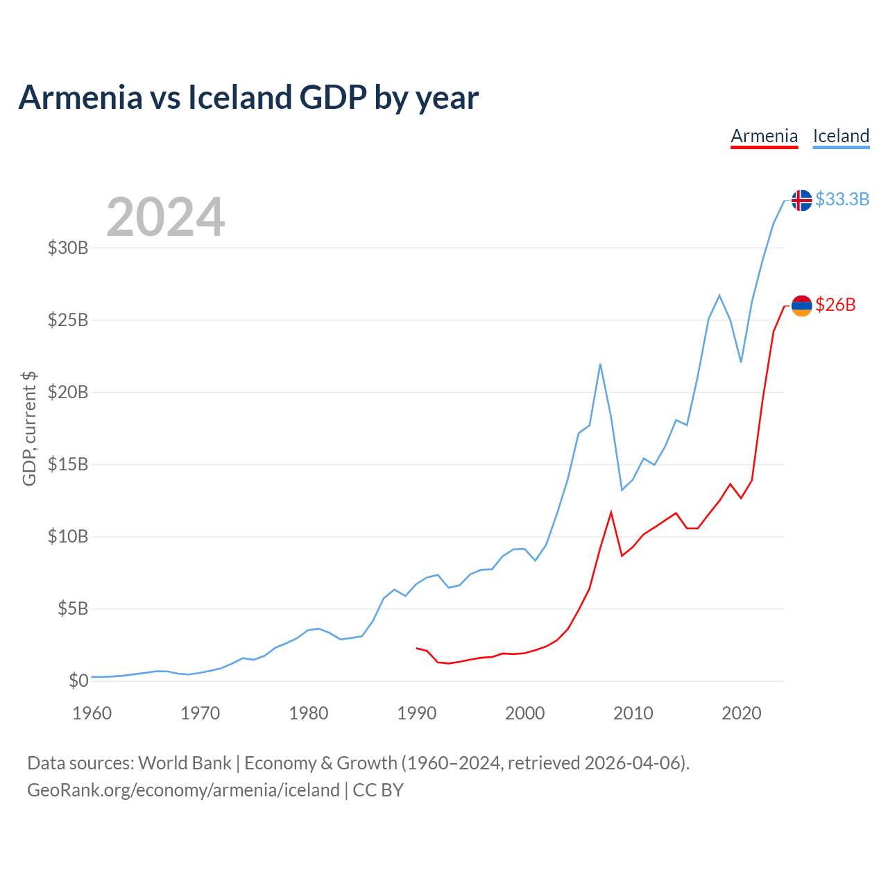 Armenia vs Iceland GDP by year