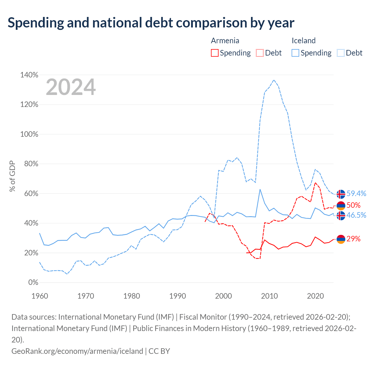 Armenia has $13B in government debt (50% of GDP), compared to $19.8B (59.4% of GDP) in Iceland.