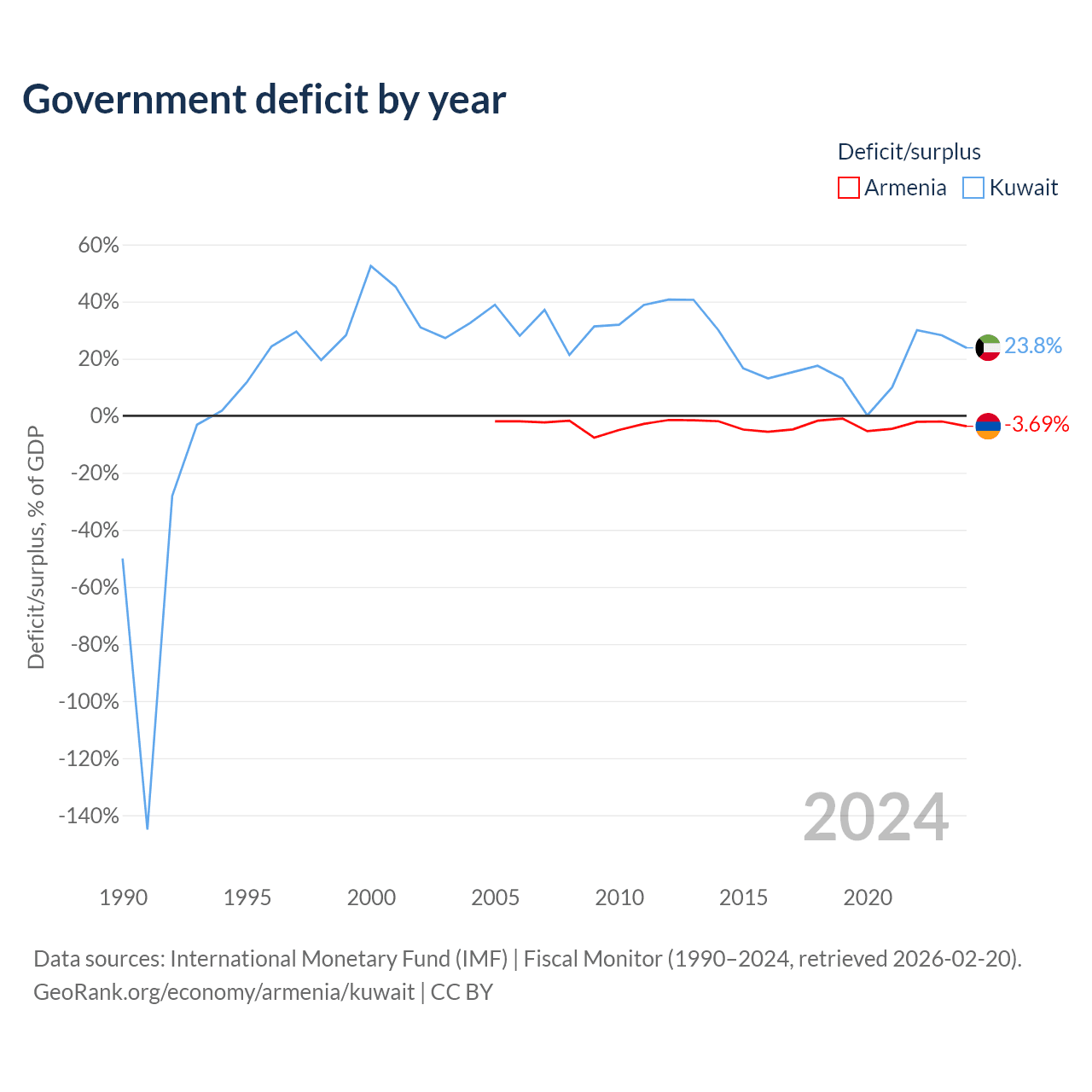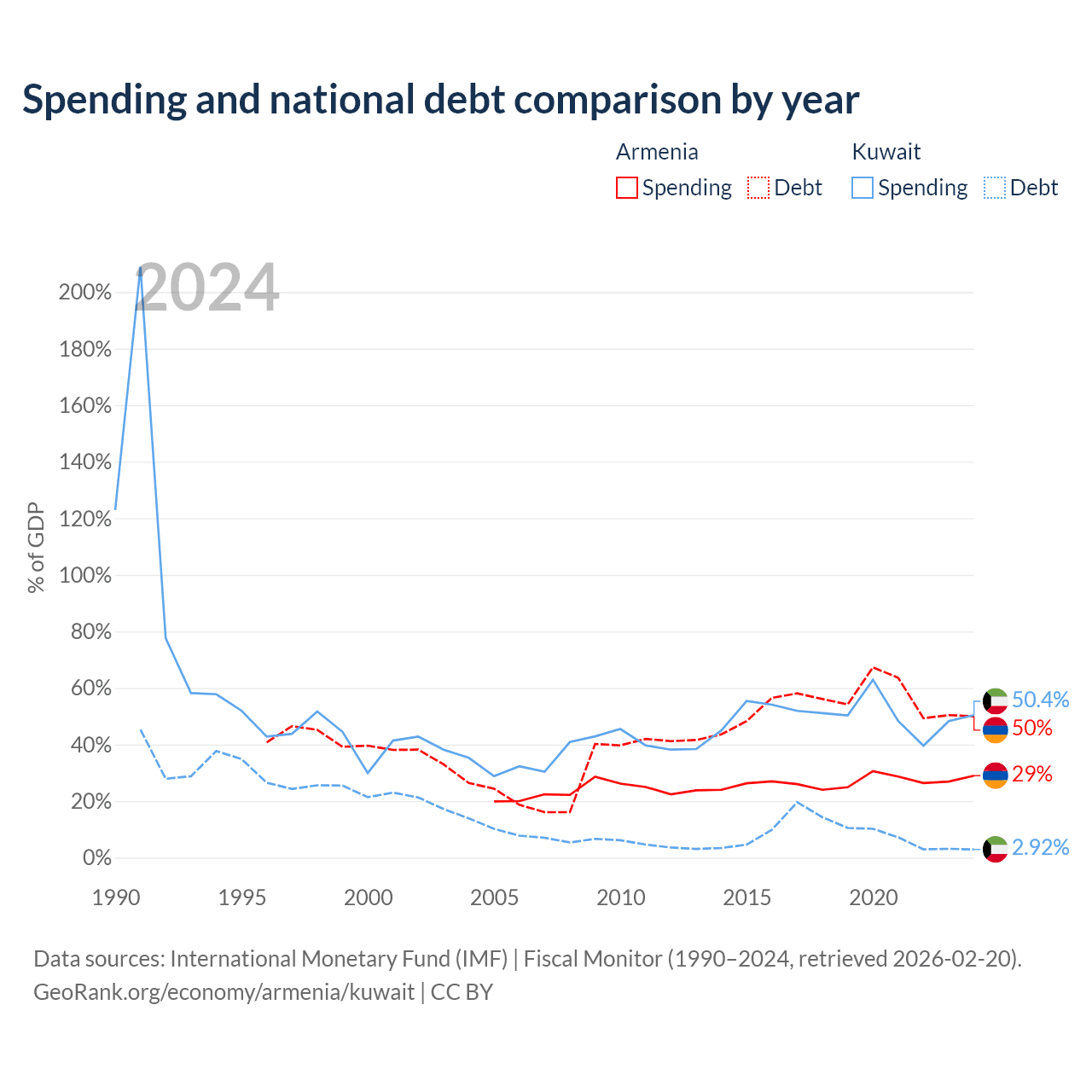 Armenia has $13B in government debt (50% of GDP), compared to $4.68B (2.92% of GDP) in Kuwait.
