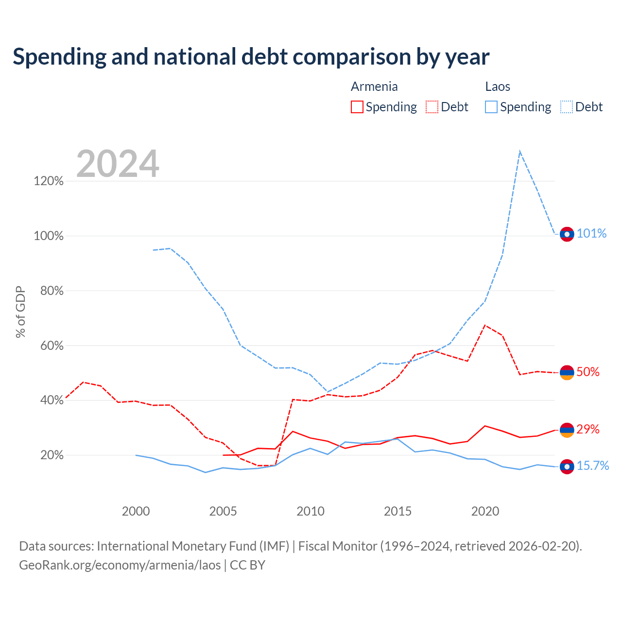 Armenia has $13B in government debt (50% of GDP), compared to $16.6B (100.5% of GDP) in Laos.