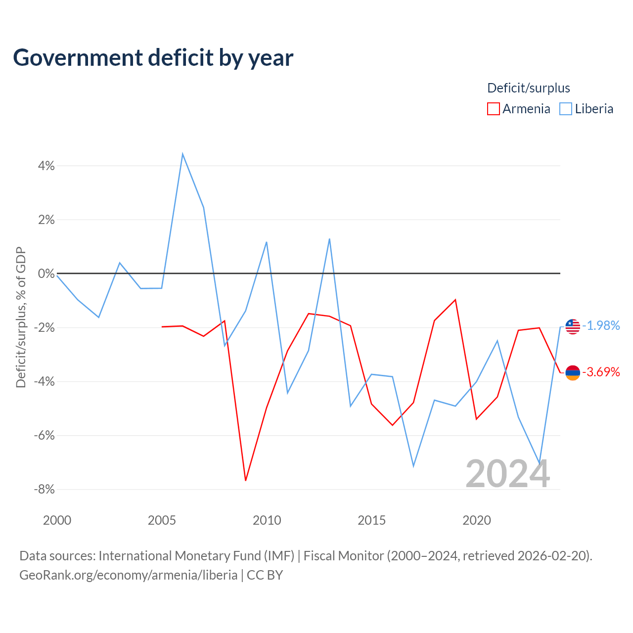 Armenia has $13B in government debt (50% of GDP), compared to $2.73B (57.2% of GDP) in Liberia.