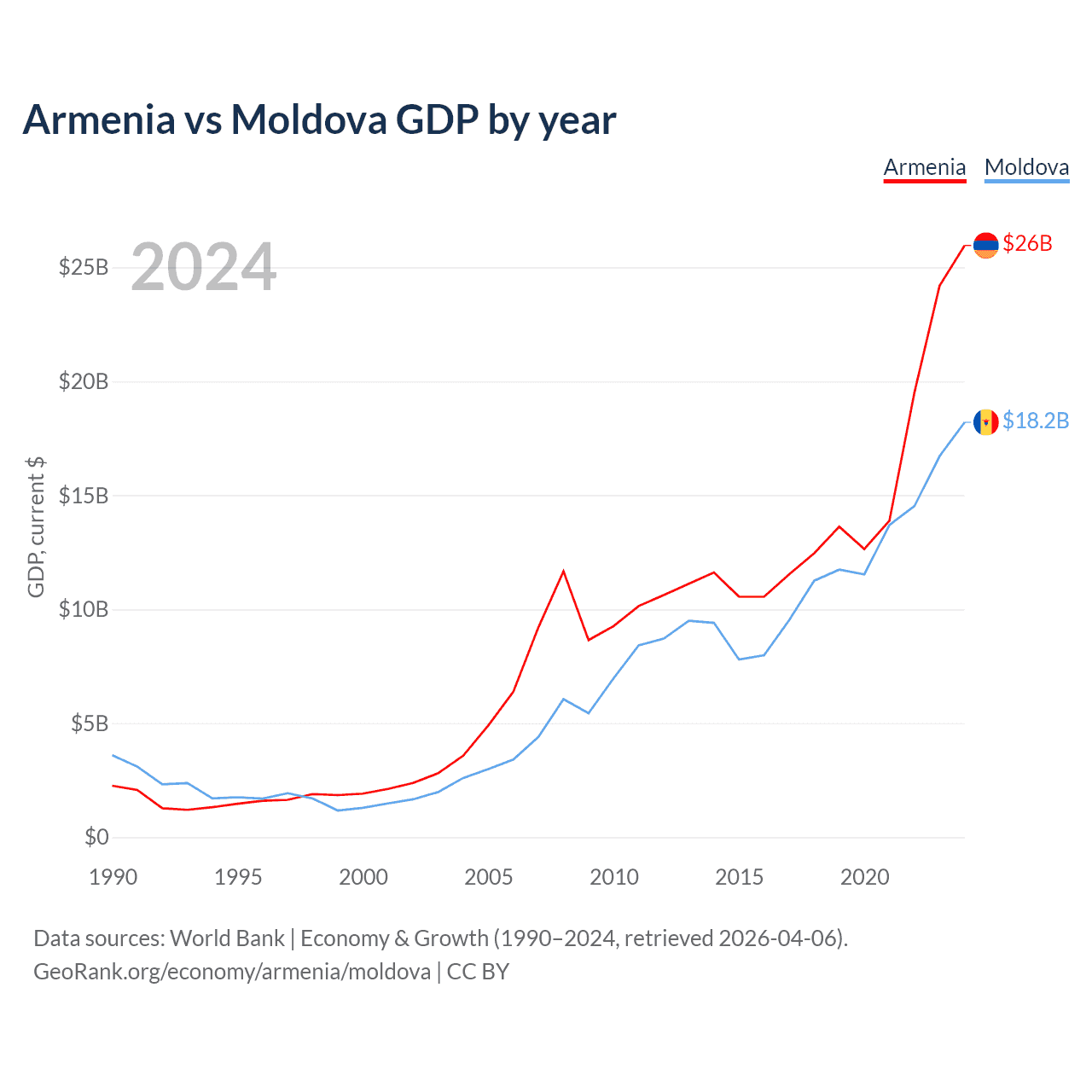 Armenia vs Moldova GDP by year