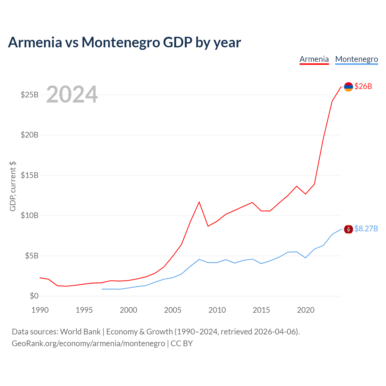 Armenia vs Montenegro GDP by year