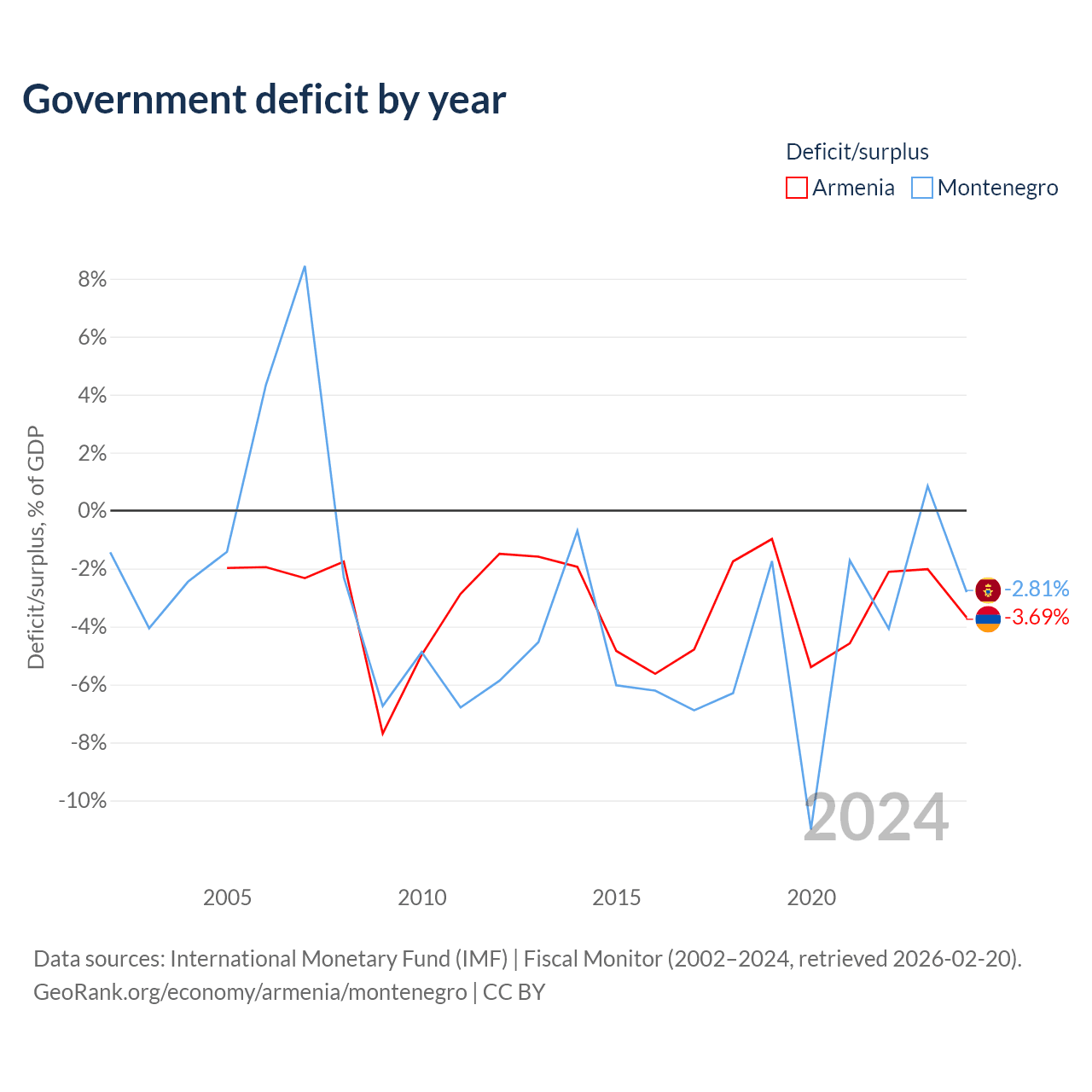 - International Monetary Fund (IMF) | Fiscal Monitor (1996–2024, retrieved 2026-02-20)