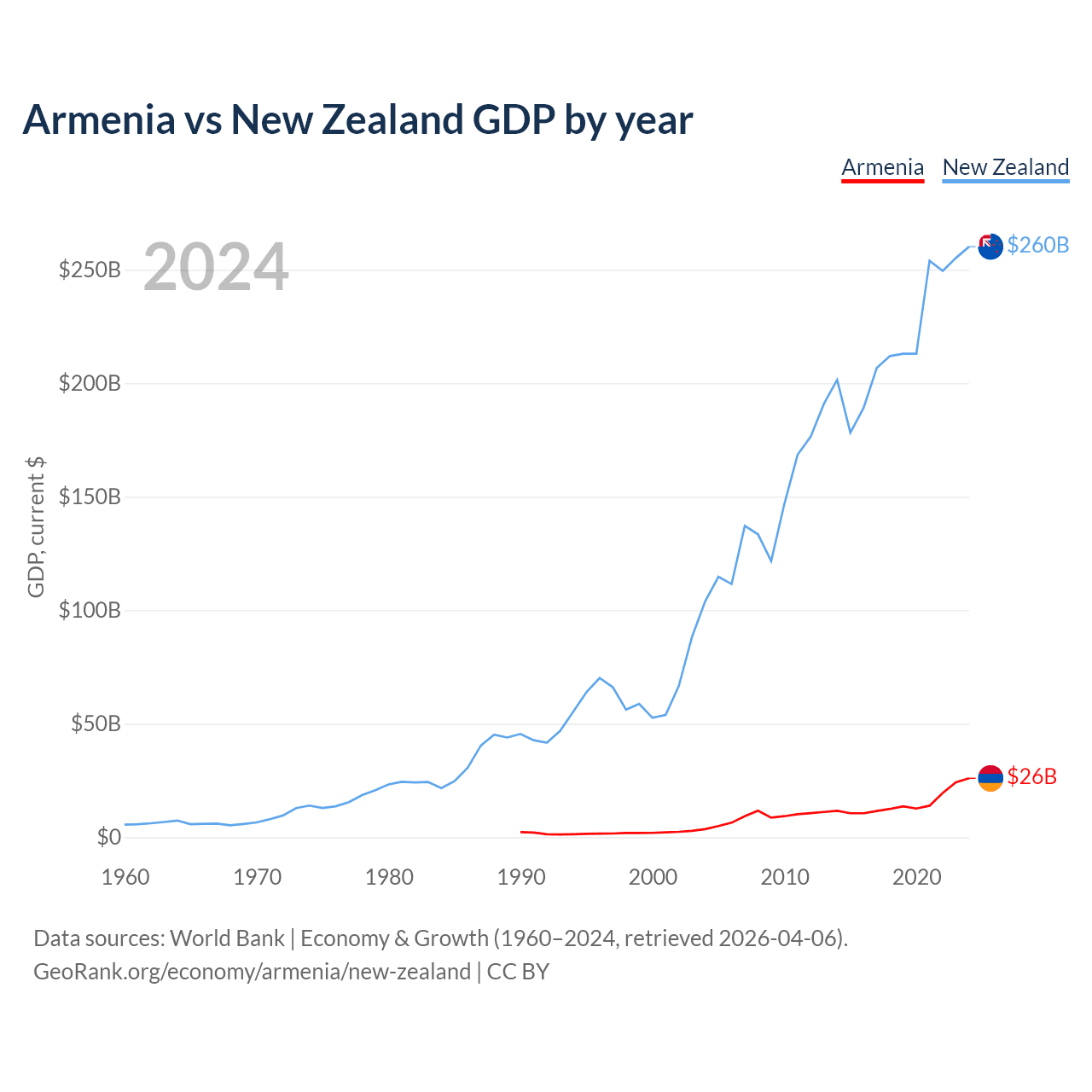 Armenia vs New Zealand GDP by year