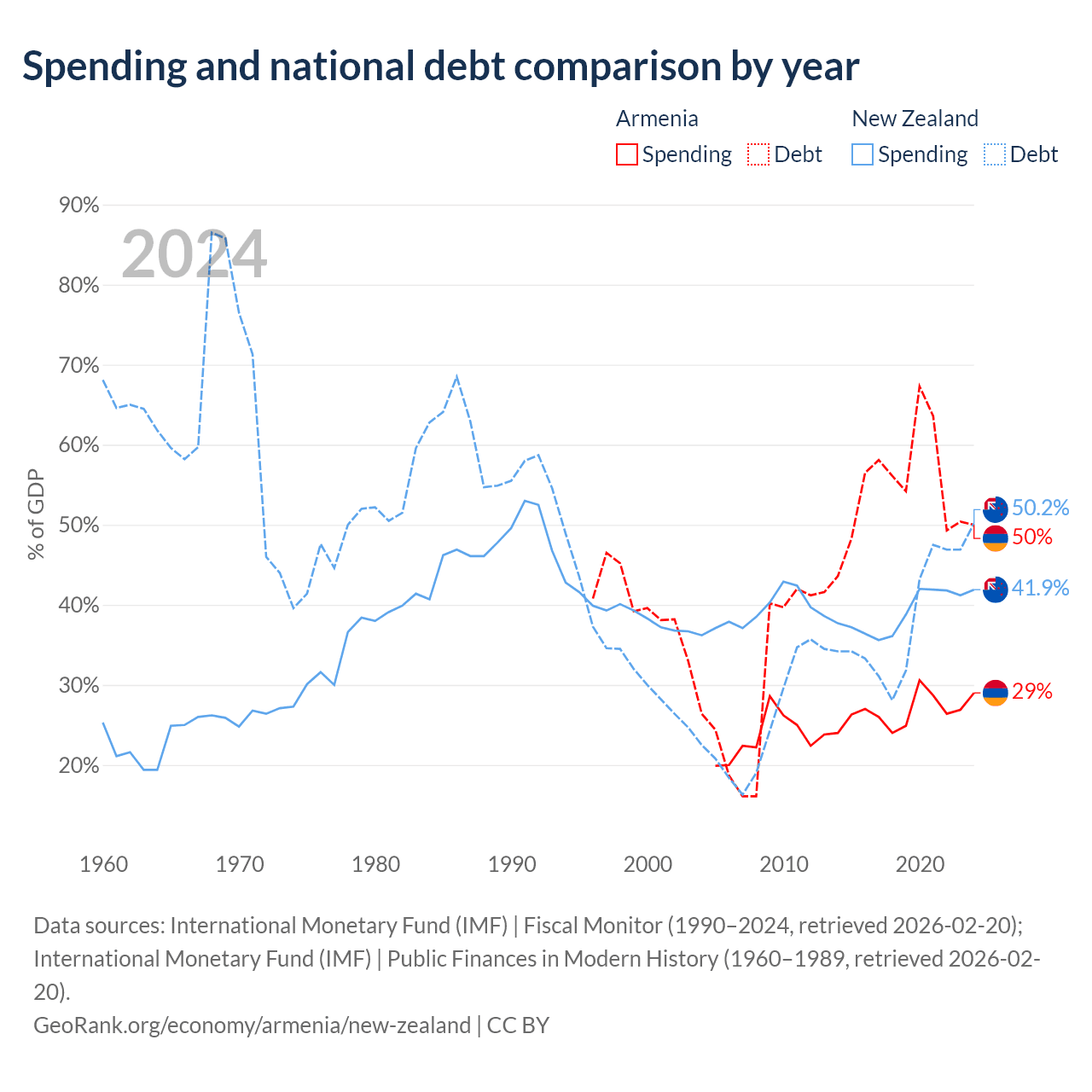 Armenia has $13B in government debt (50% of GDP), compared to $131B (50.2% of GDP) in New Zealand.