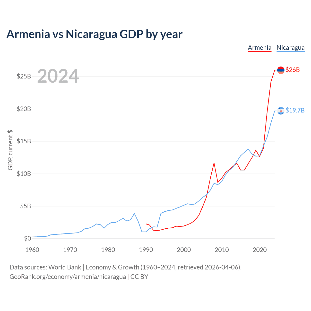 Armenia vs Nicaragua GDP by year