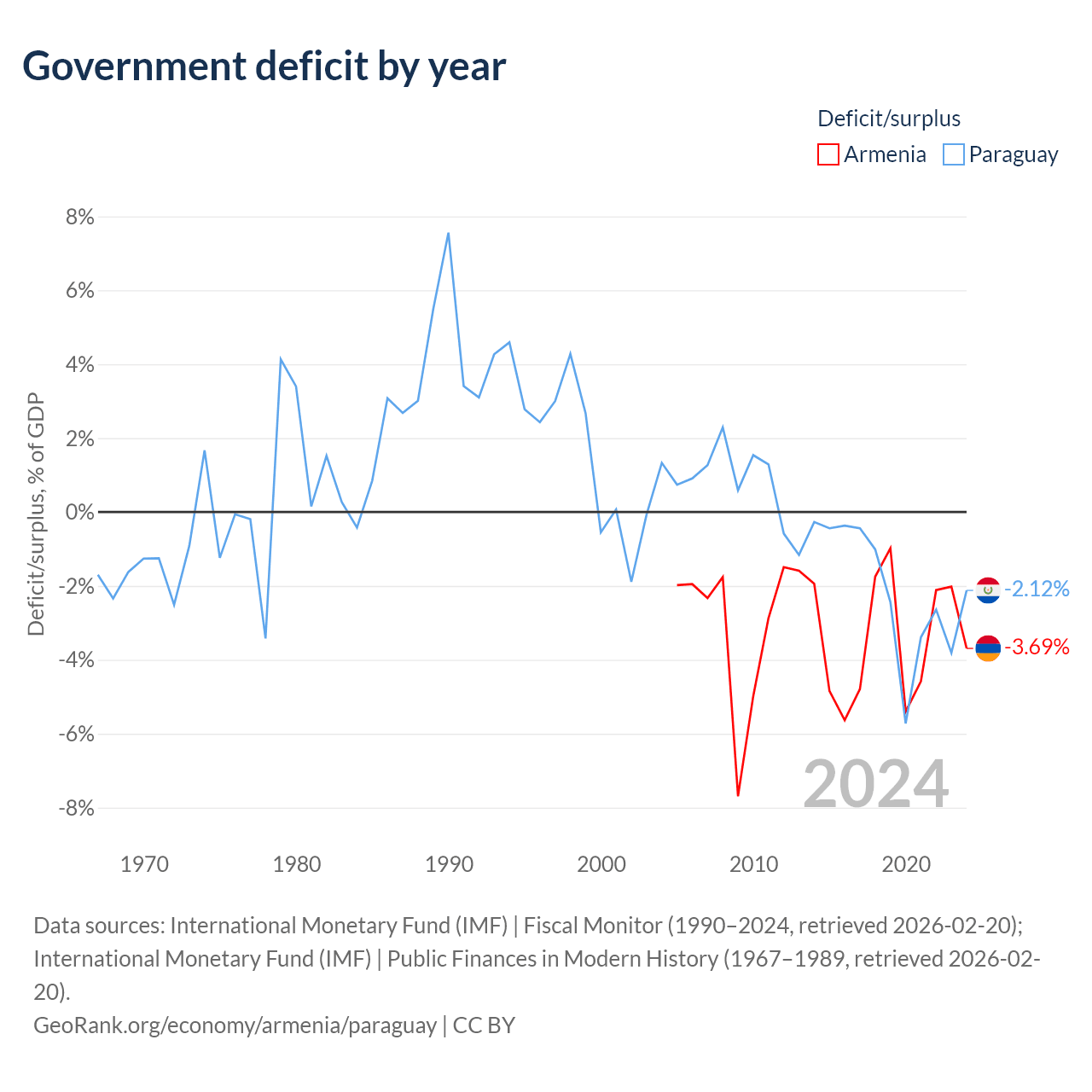 - International Monetary Fund (IMF) | Fiscal Monitor (1990–2024, retrieved 2026-02-20)