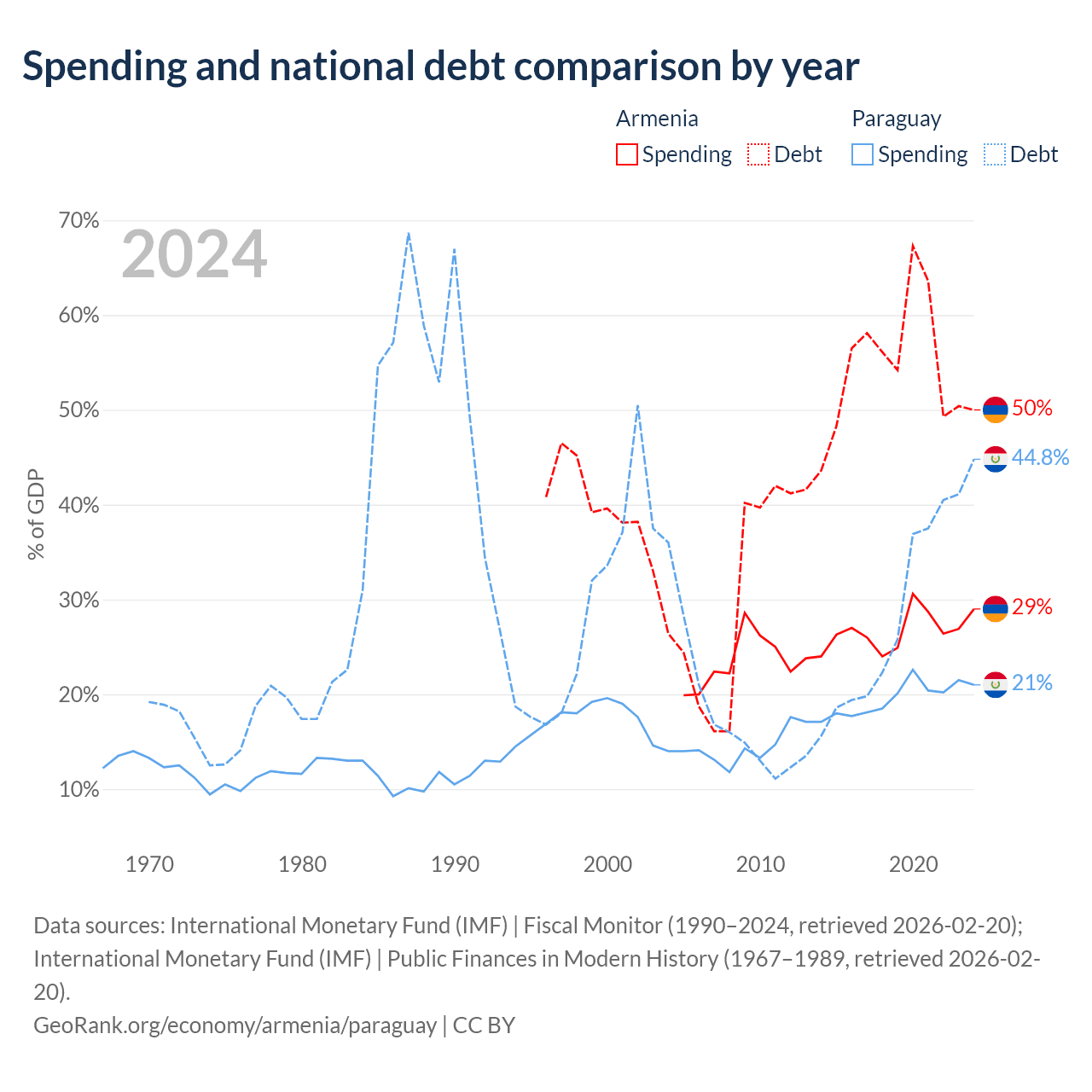 Armenia has $13B in government debt (50% of GDP), compared to $19.9B (44.8% of GDP) in Paraguay.