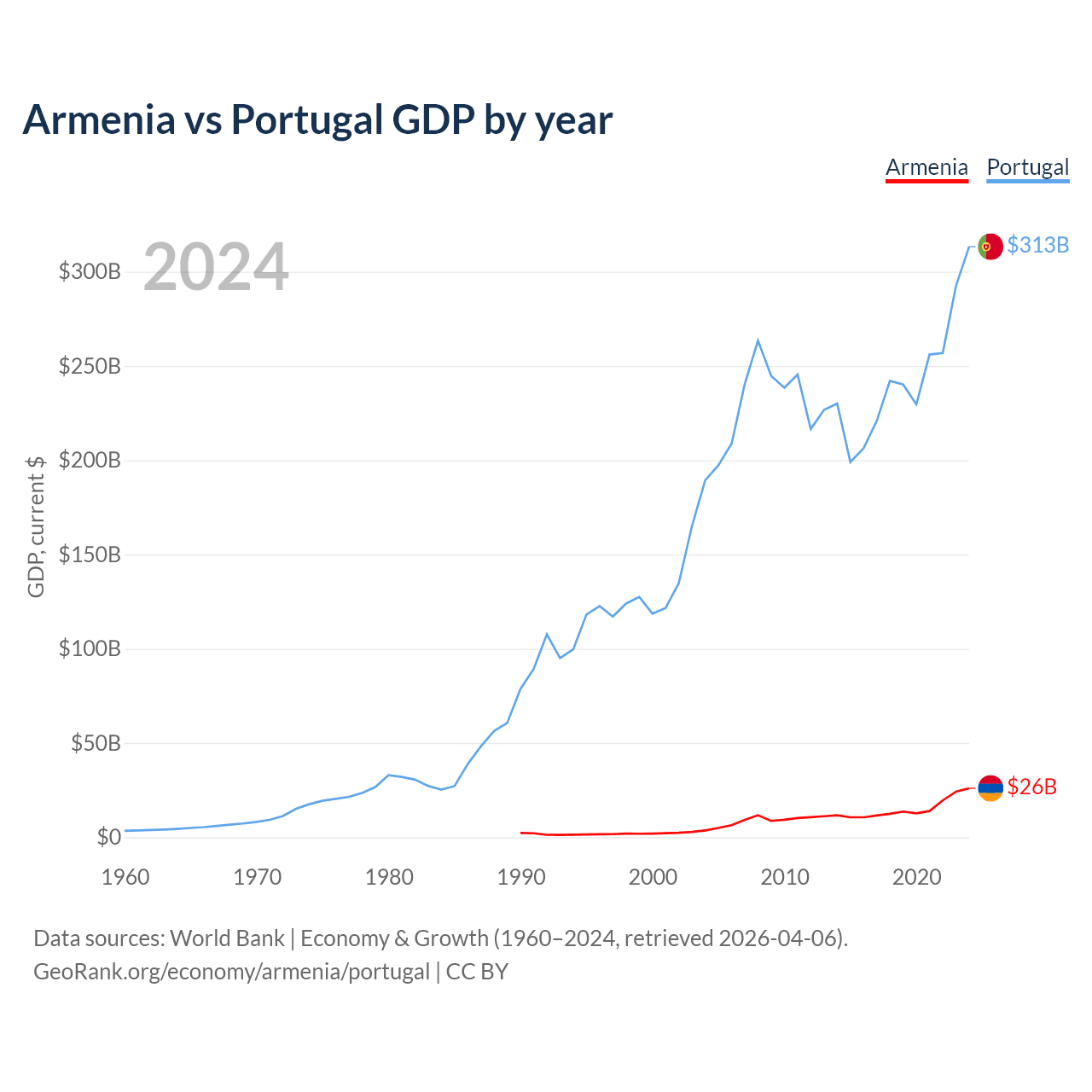 Armenia vs Portugal GDP by year