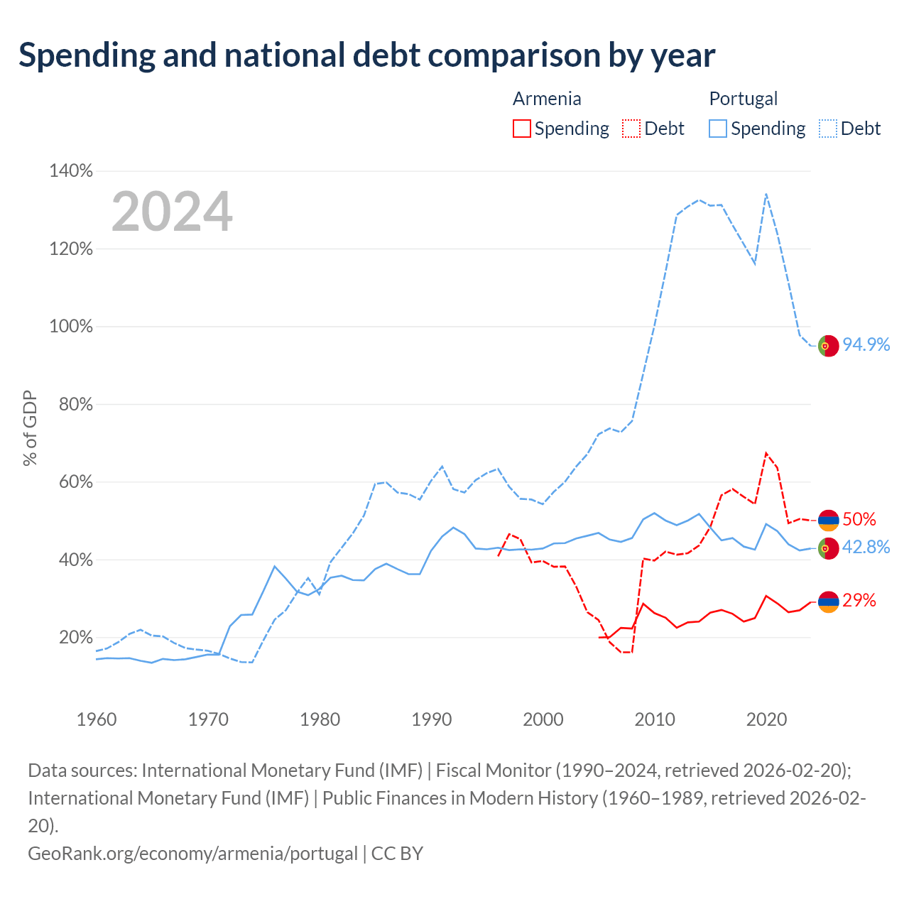 Armenia has $13B in government debt (50% of GDP), compared to $297B (94.9% of GDP) in Portugal.
