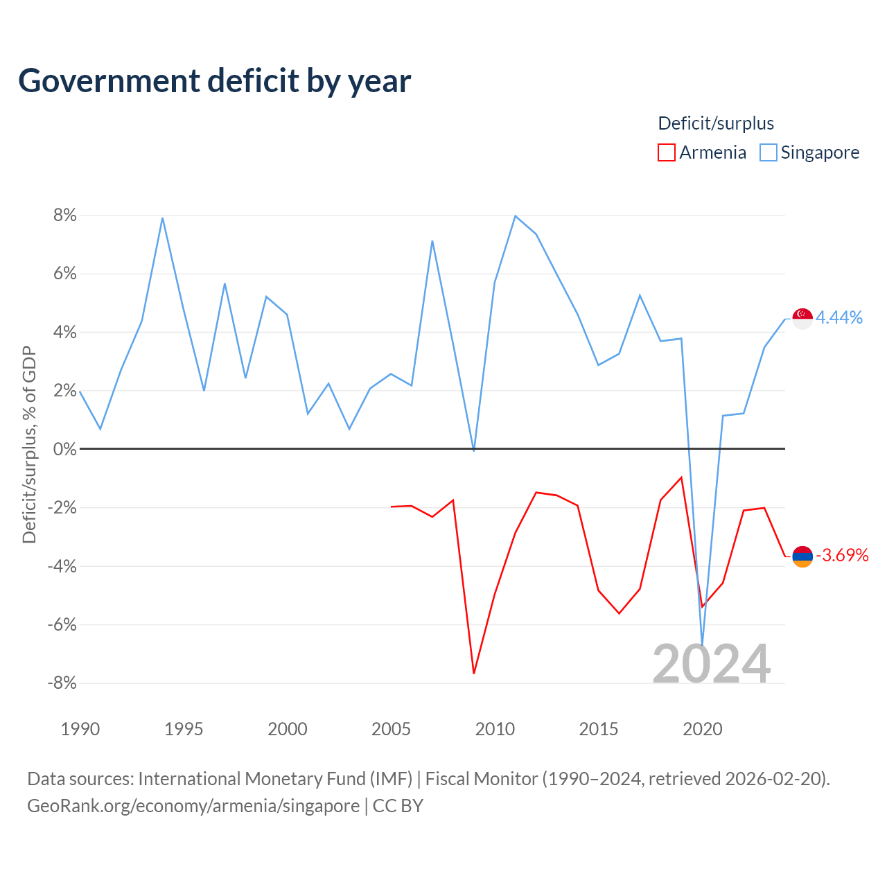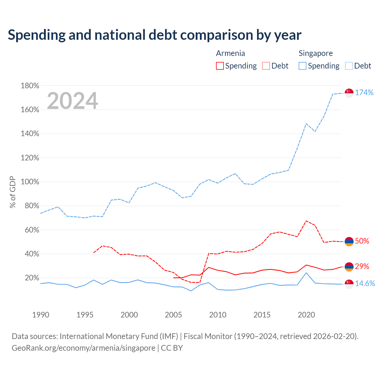 Armenia has $13B in government debt (50% of GDP), compared to $950B (173.5% of GDP) in Singapore.