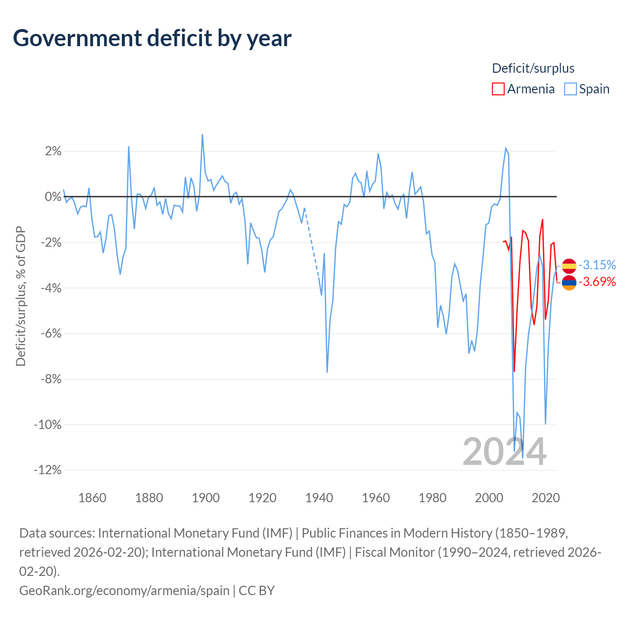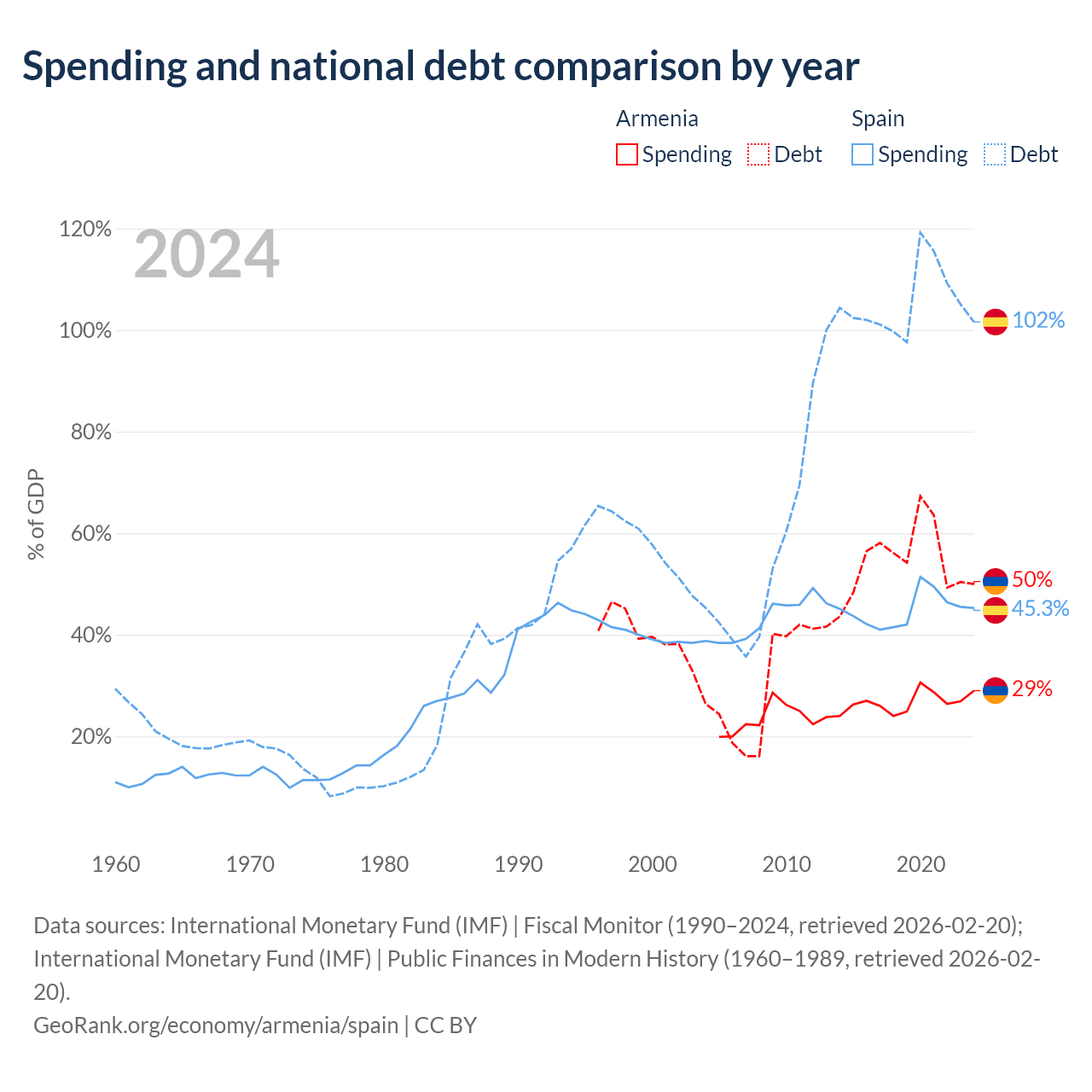 Armenia has $13B in government debt (50% of GDP), compared to $1.75T (101.6% of GDP) in Spain.