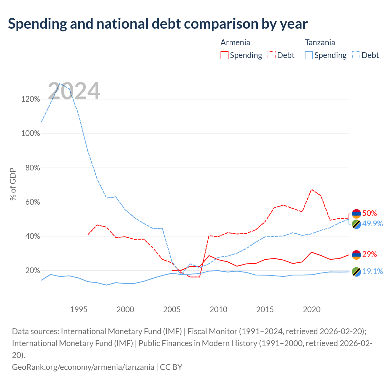 Armenia has $13B in government debt (50% of GDP), compared to $39.3B (49.9% of GDP) in Tanzania.